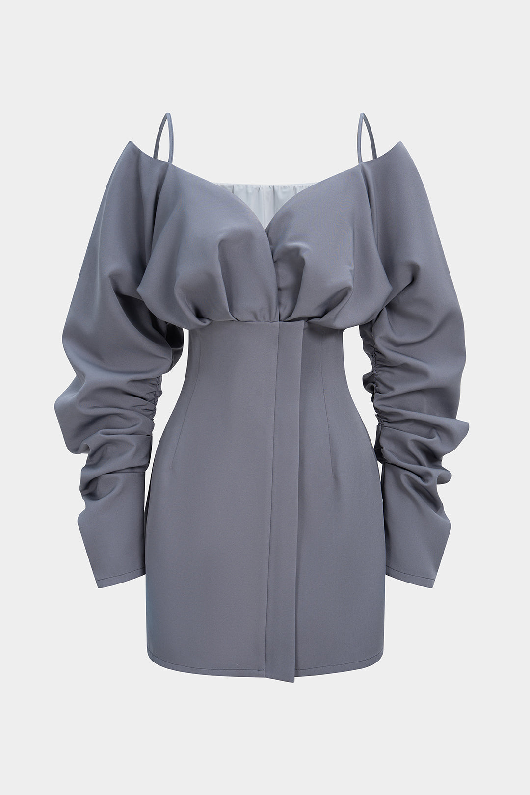Off-Shoulder Ruched Long Sleeve Mini Dress