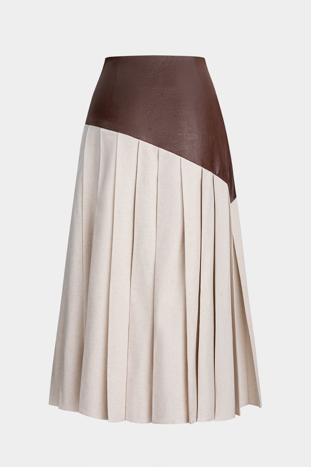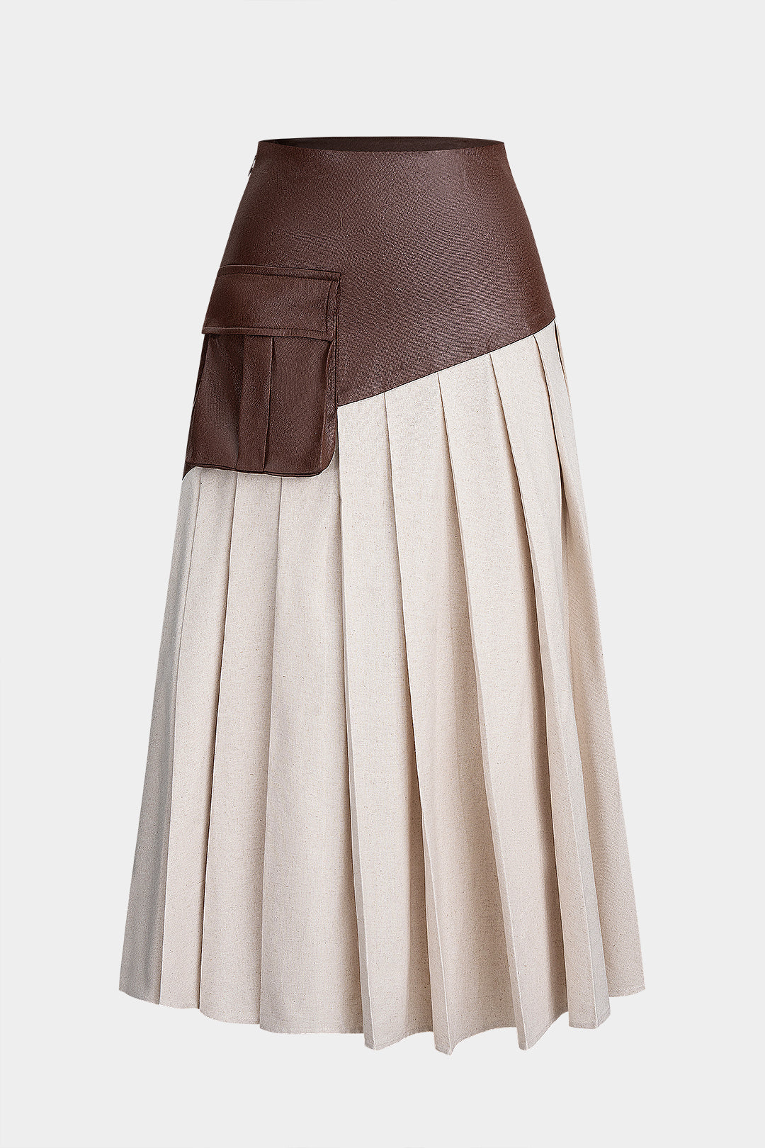 Linen Patchwork Pleated Skirt