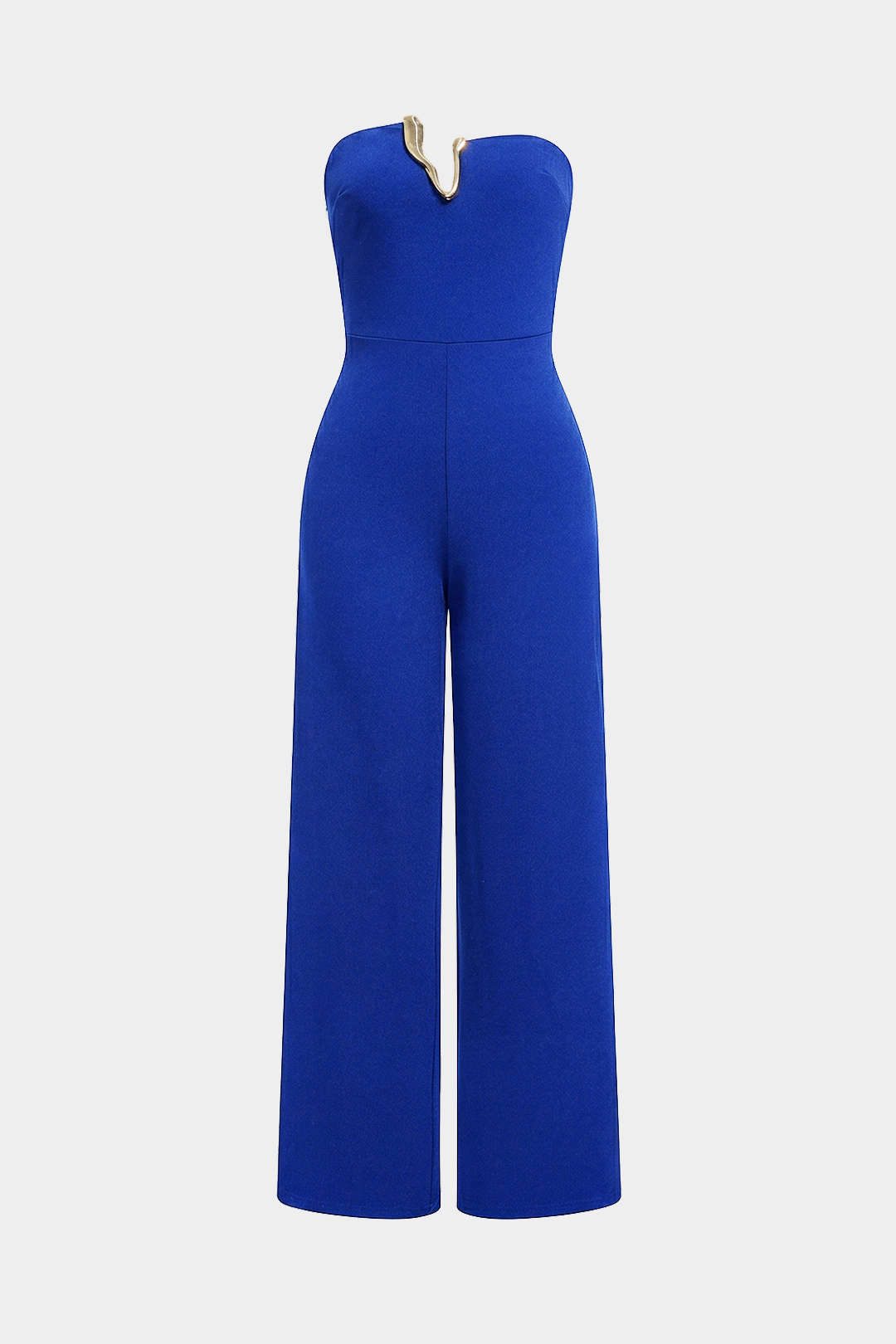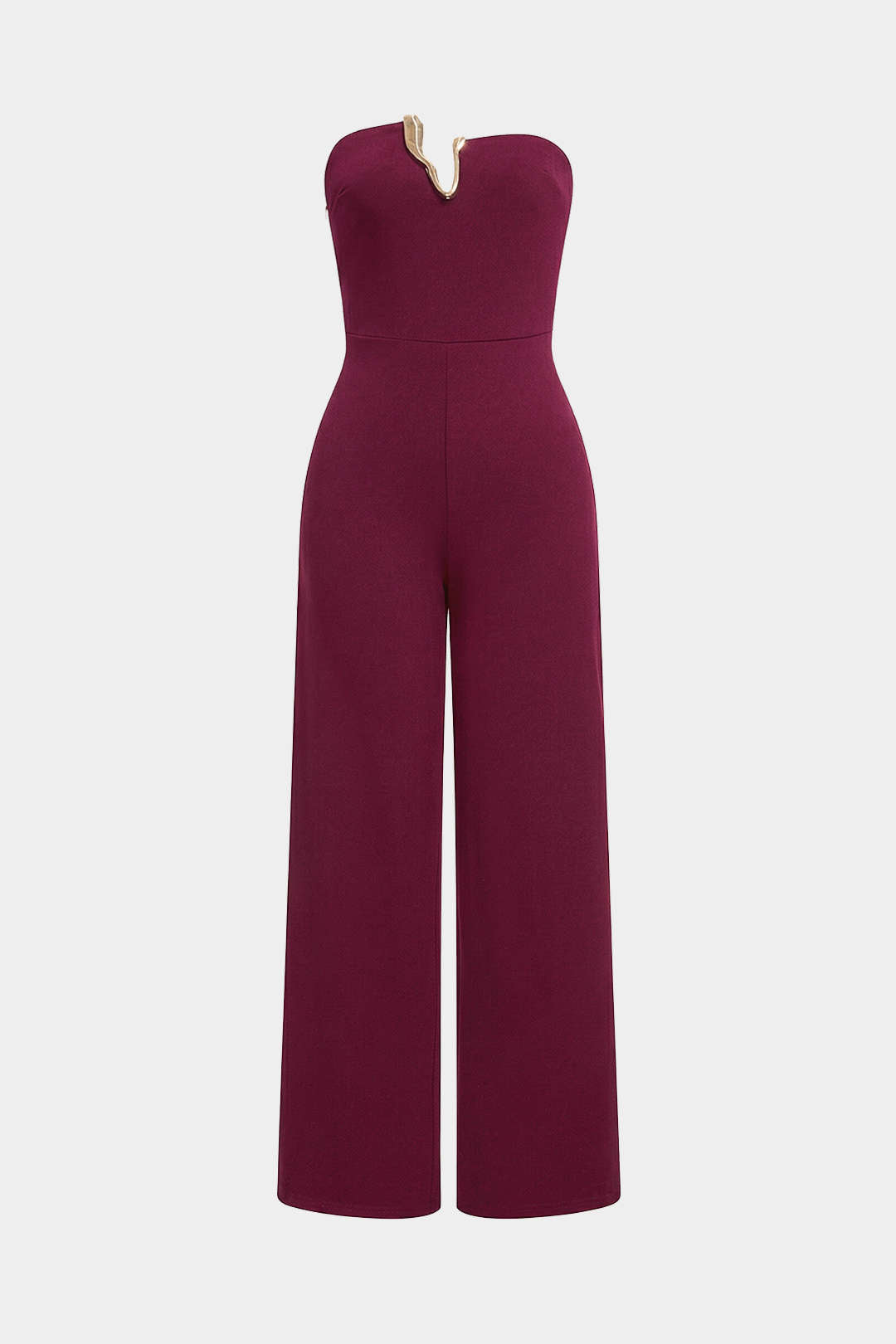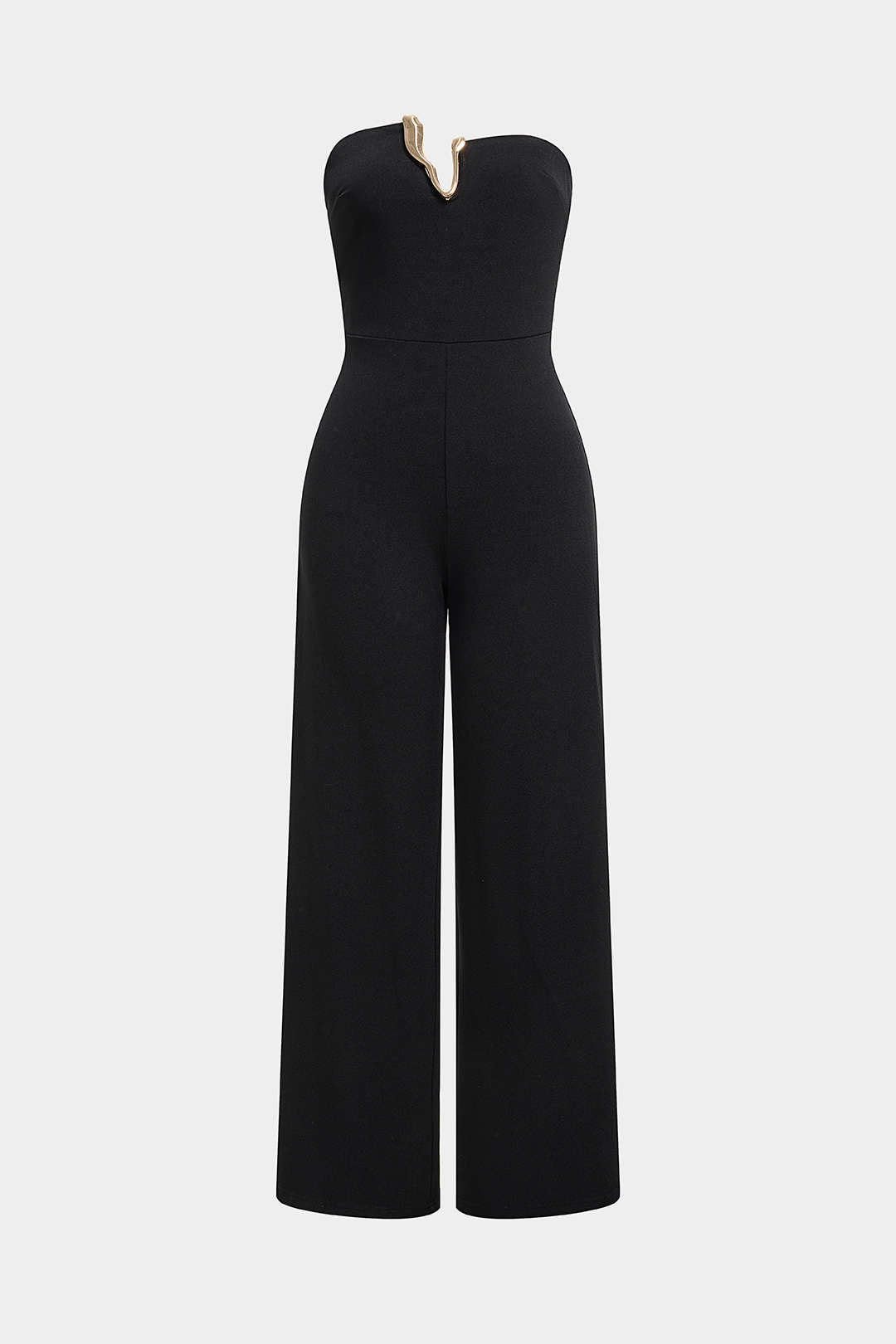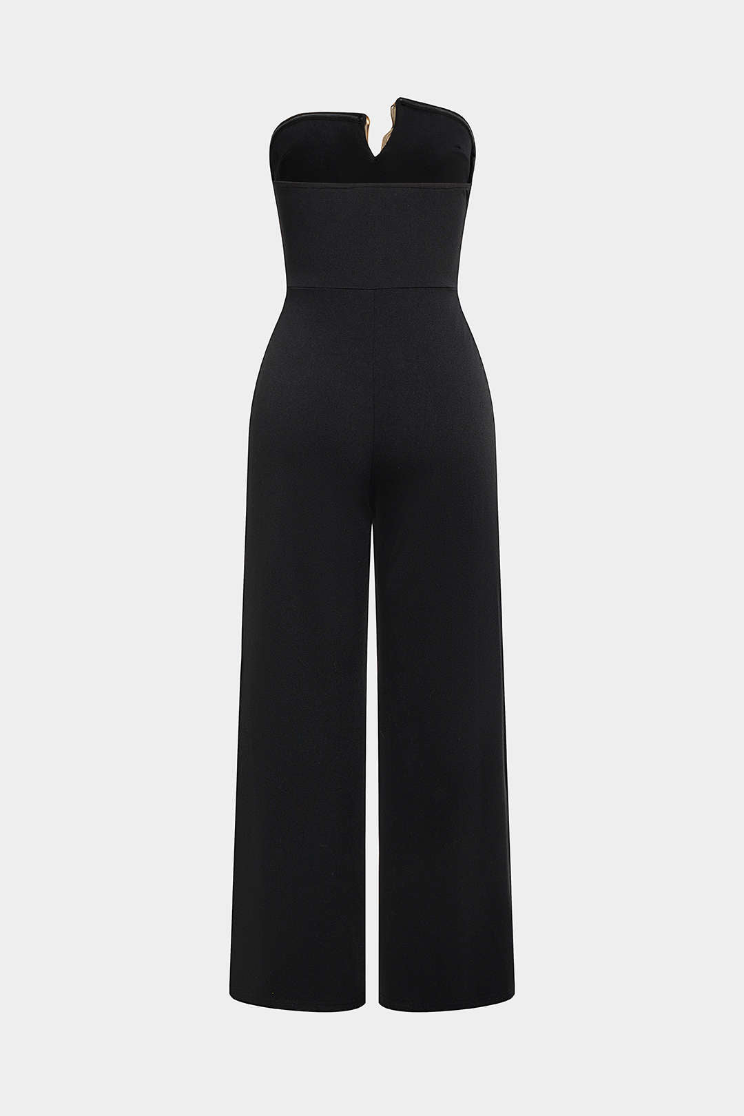 Irregular Metallic Strapless Wide Leg Jumpsuit