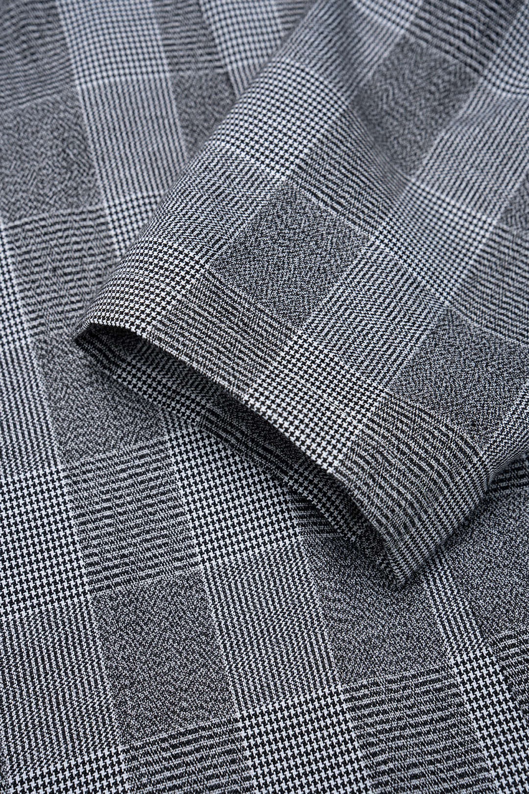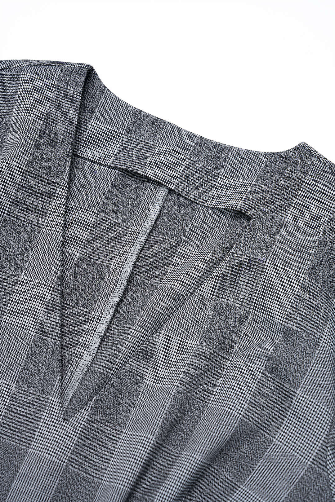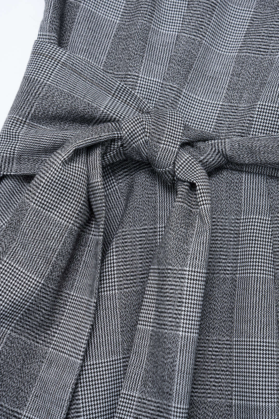 Plaid Print V-Neck Knot Ruched Asymmetrical Hem Long-Sleeve Midi Dress