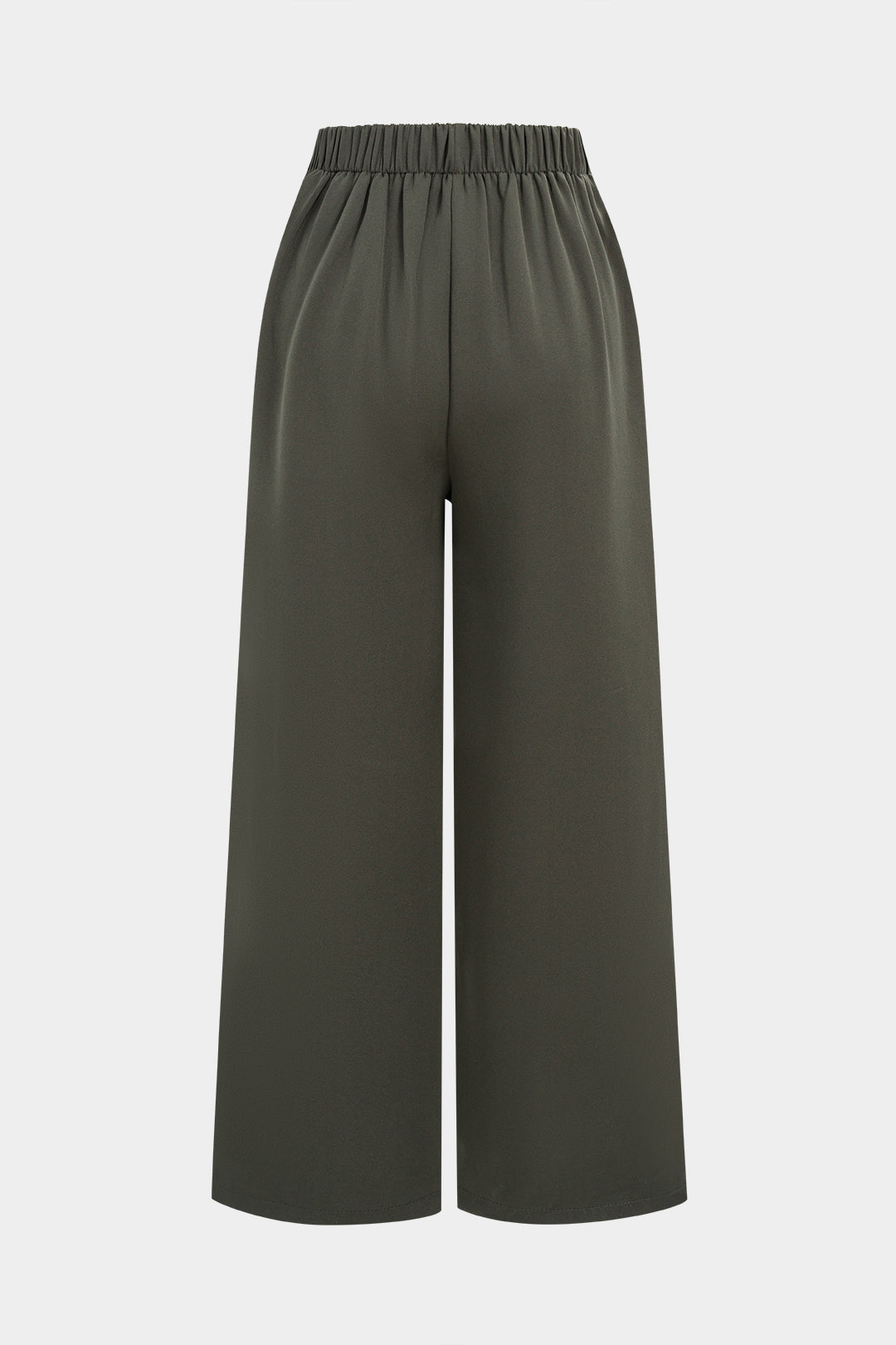 Button Shirred Waistband Wide Leg Pants