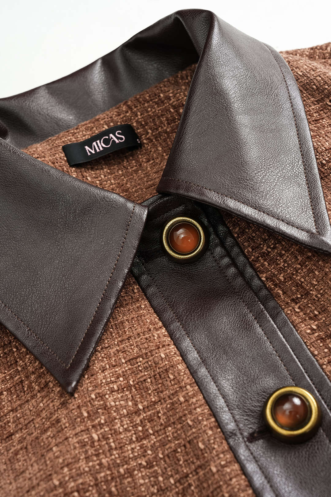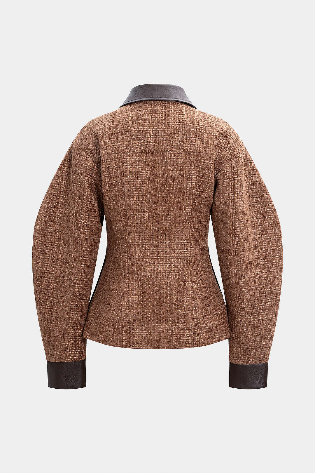 Faux Leather Patchwork Gigot Sleeve Jacket