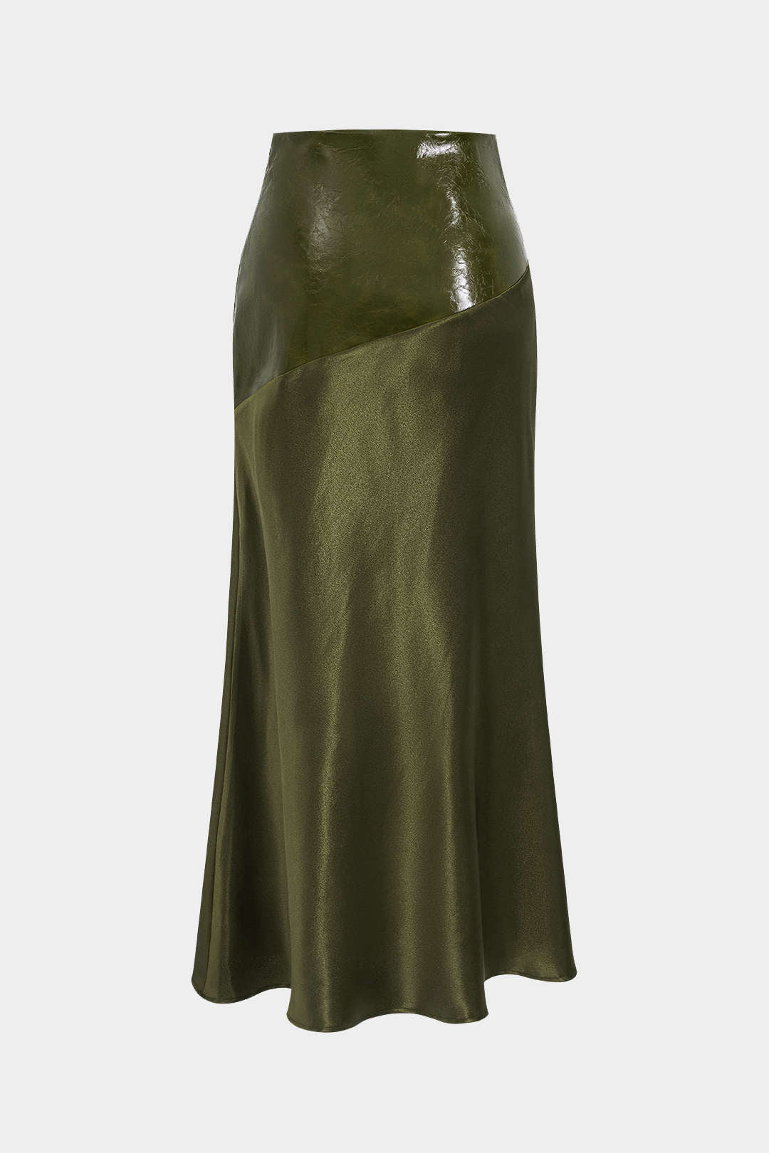 Jupe asymétrique en faux cuir satiné en faux cuir