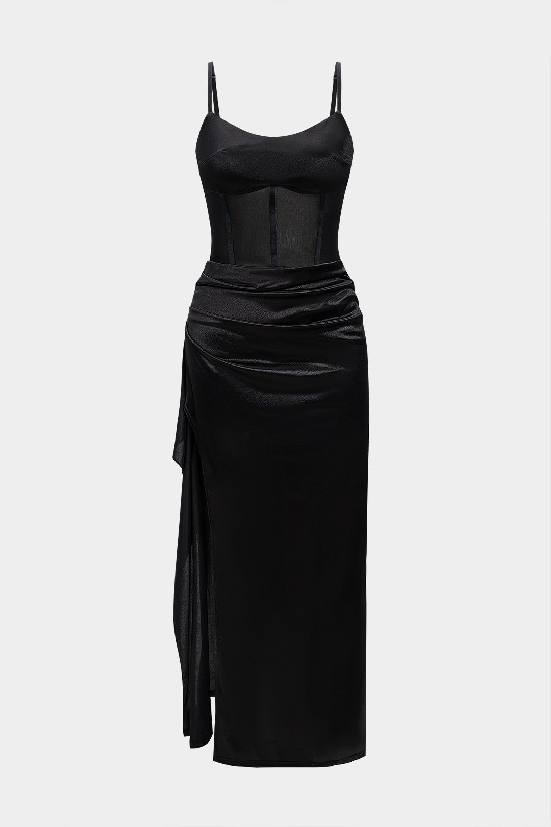 Satin Patchwork Slip Corset Waist Sleeveless Maxi Dress