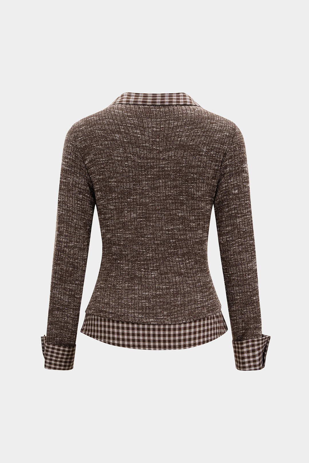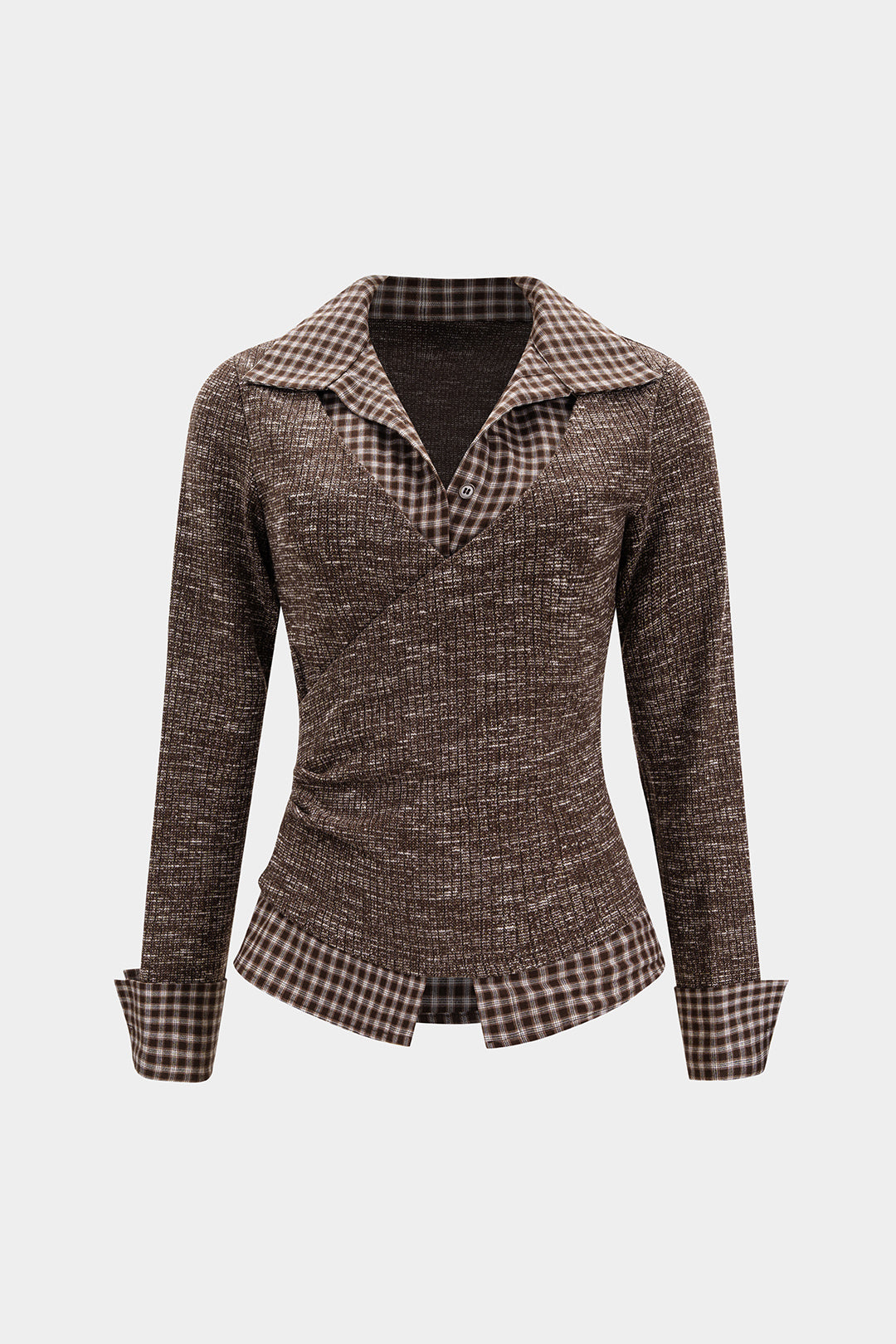 Plaid Print Patchwork Button Long-Sleeve Shirt