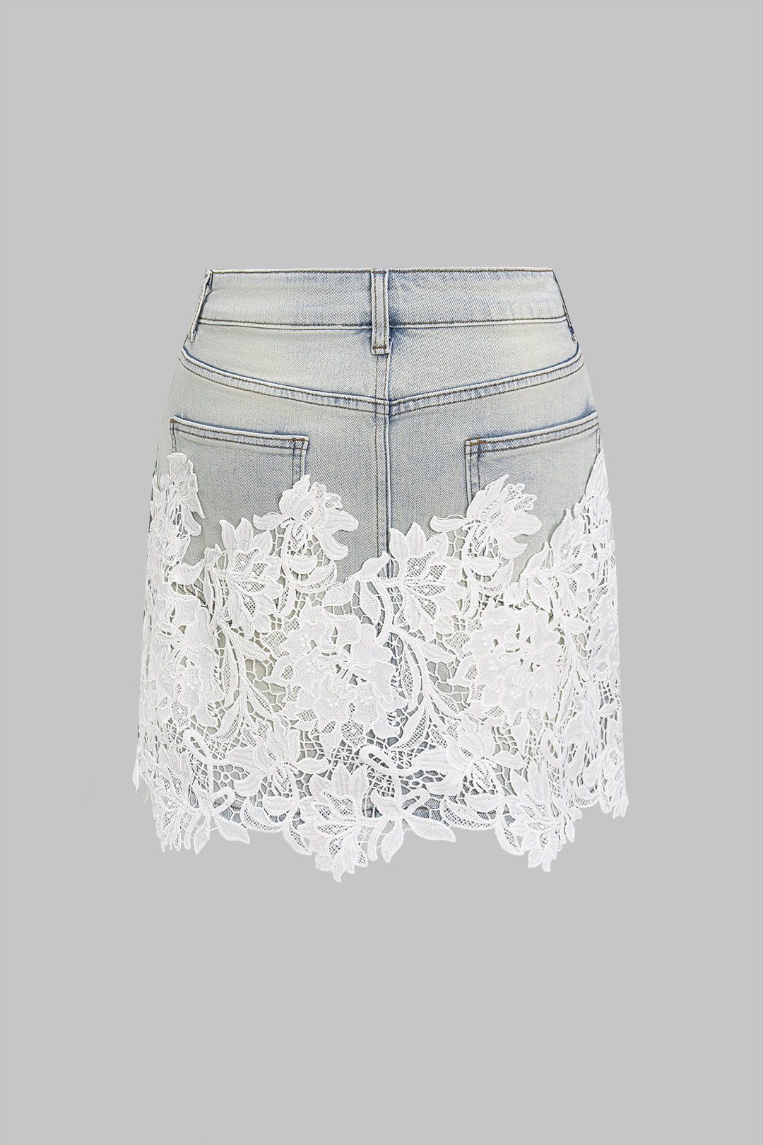 Denim High Waist Lace Patchwork Skirt