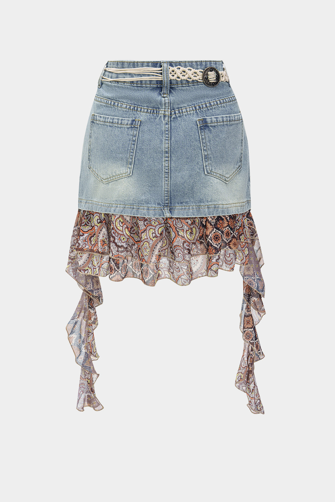 Jupe de taille haute patchwork en denim