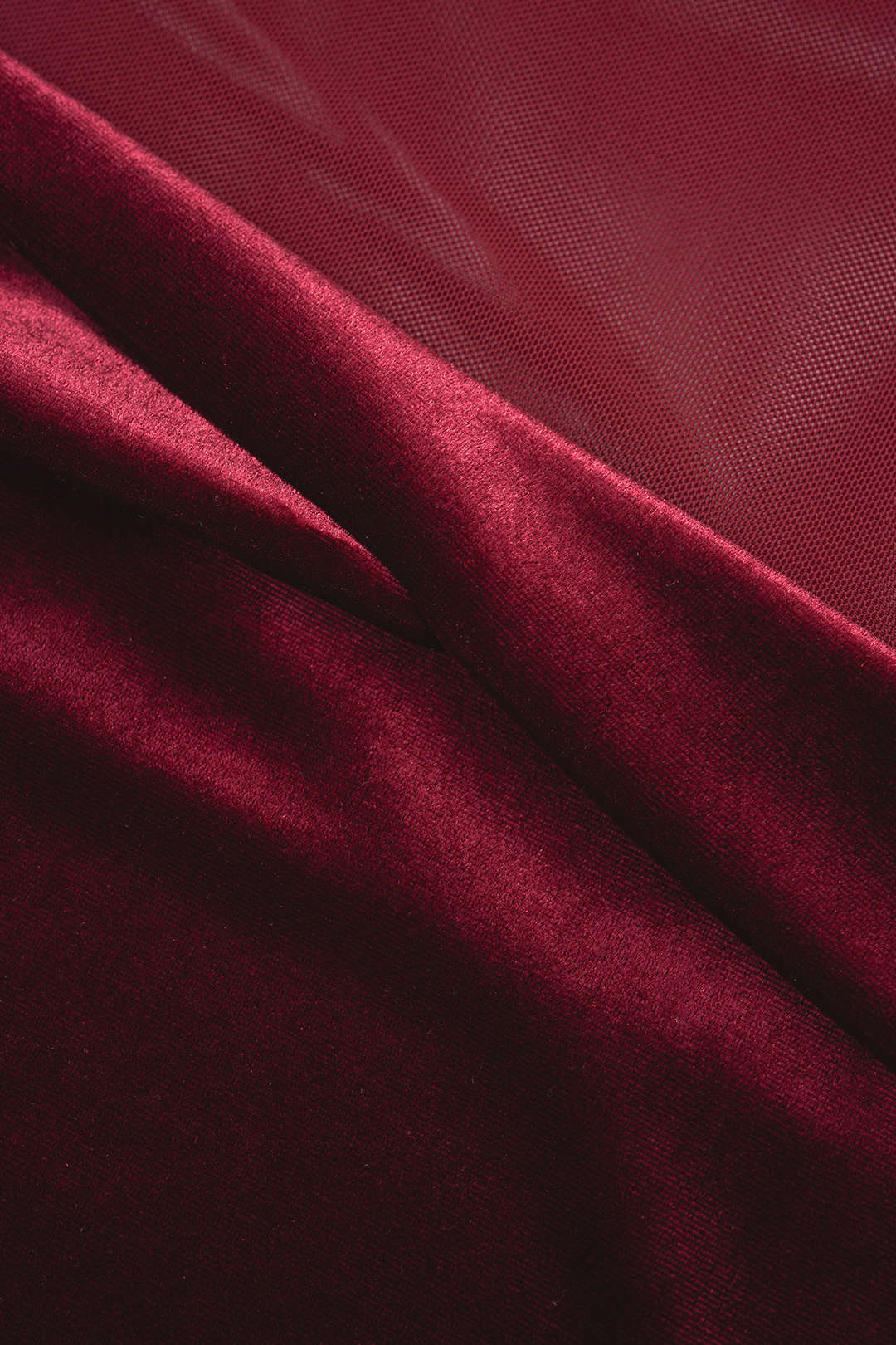 Velvet Mesh Patchwork Ruched Long Sleeve Maxi Dress