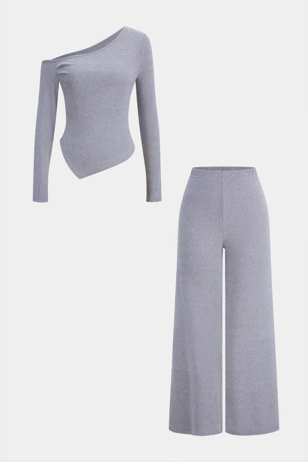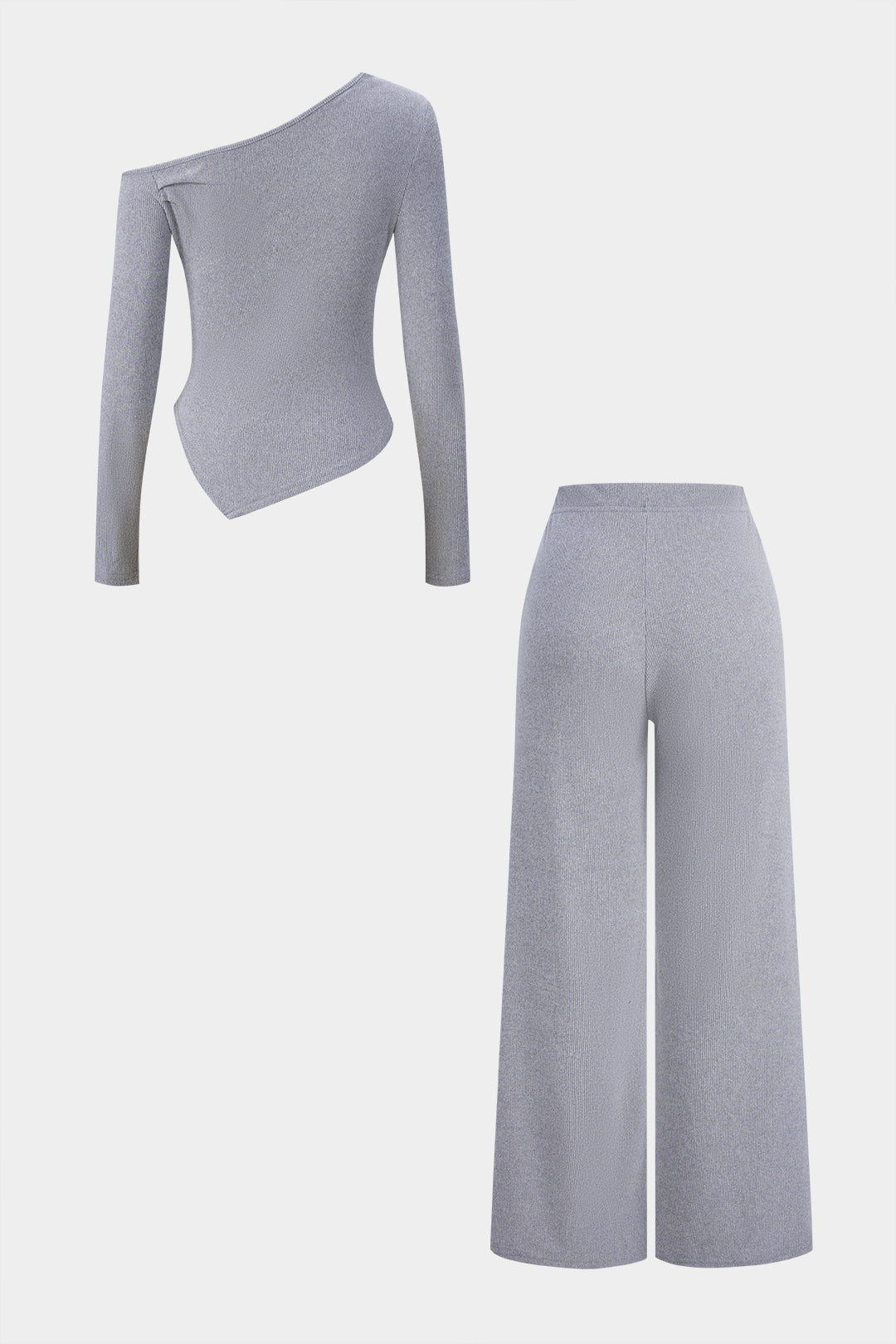 One Shoulder Long Sleeve Top And High Waist Pants Set