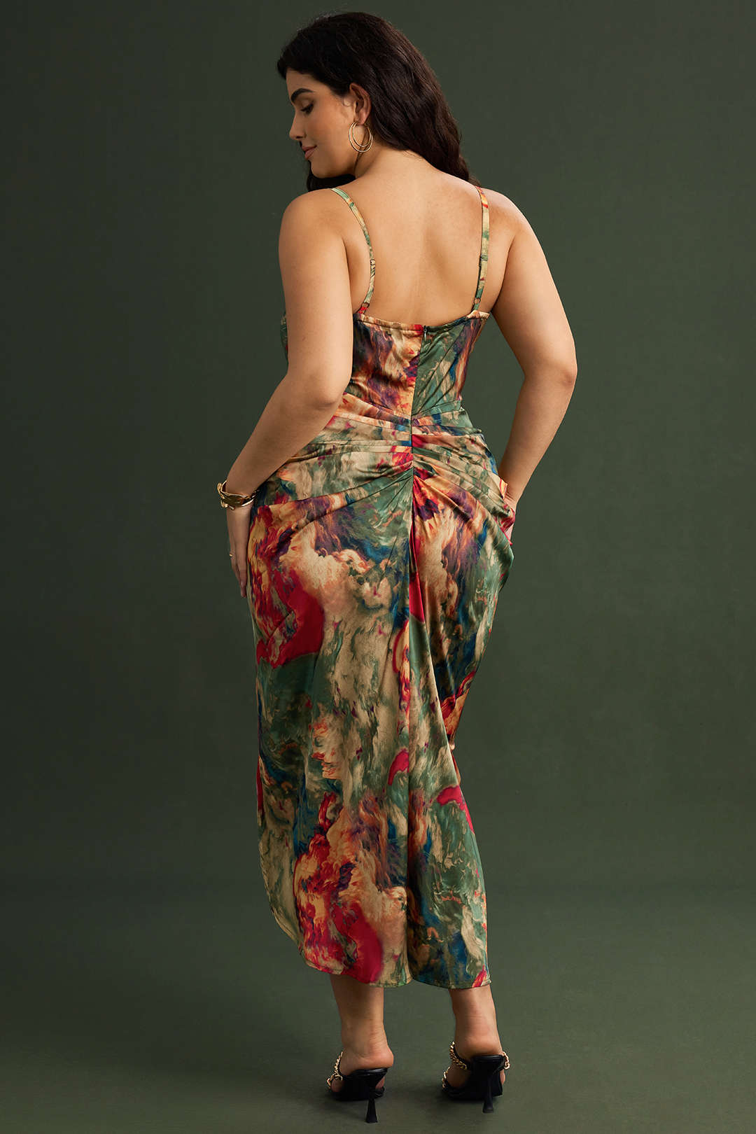 Plus taille abstraite Imprimer Satin Zipper Cowl cou