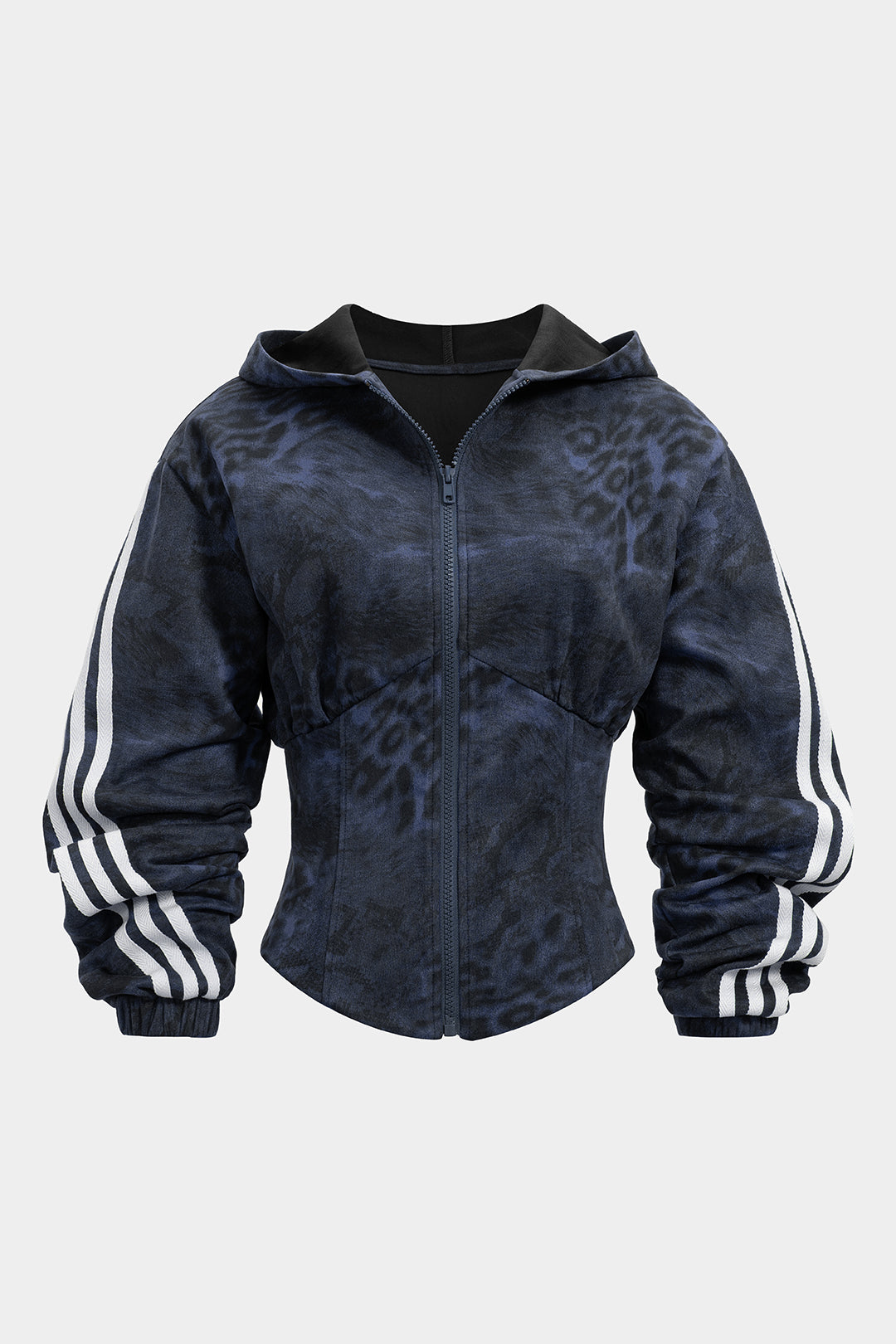 Leopard Stripes Print Zipper Waist-Cinching Long-Sleeve Hoodie