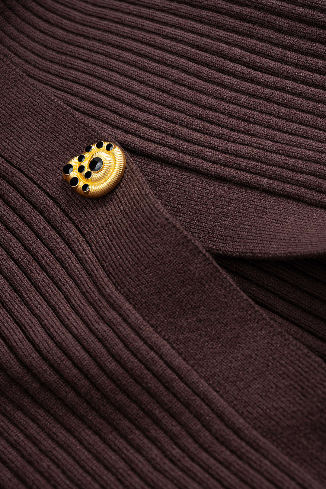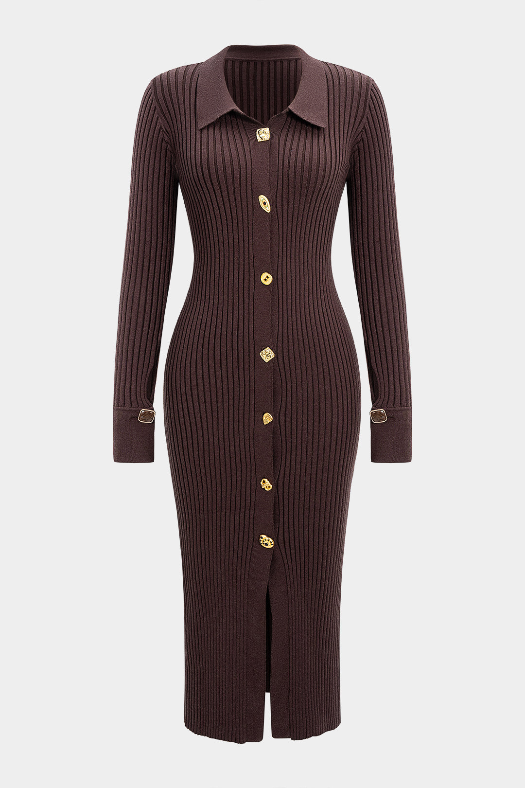 Knit Metallic Button Ribbed Long Sleeve Dress