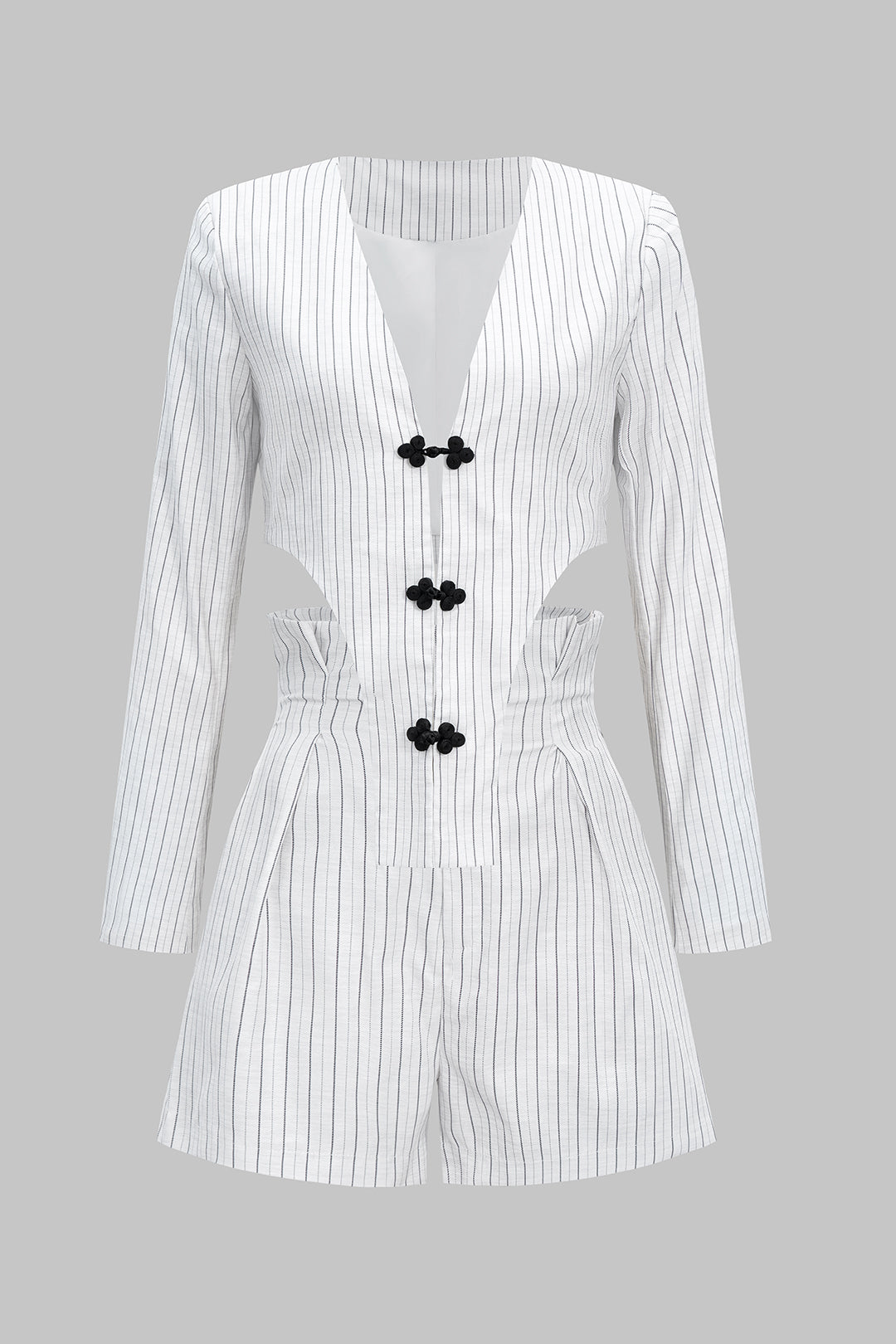 Stripes Deep V-Neck Long Sleeve Top And High Waist Shorts Set