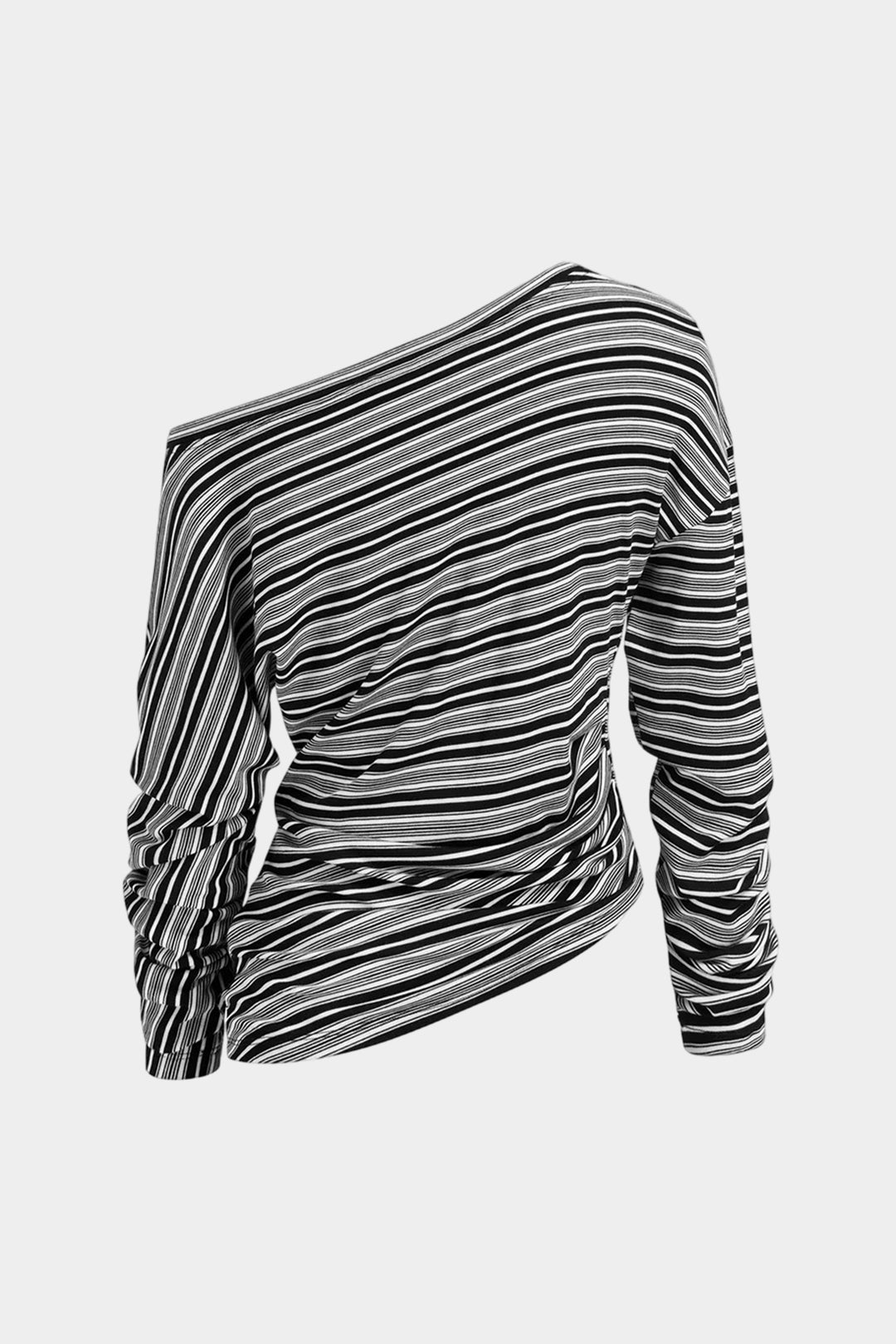 Stripes Print One Shoulder Long Sleeve T-Shirt