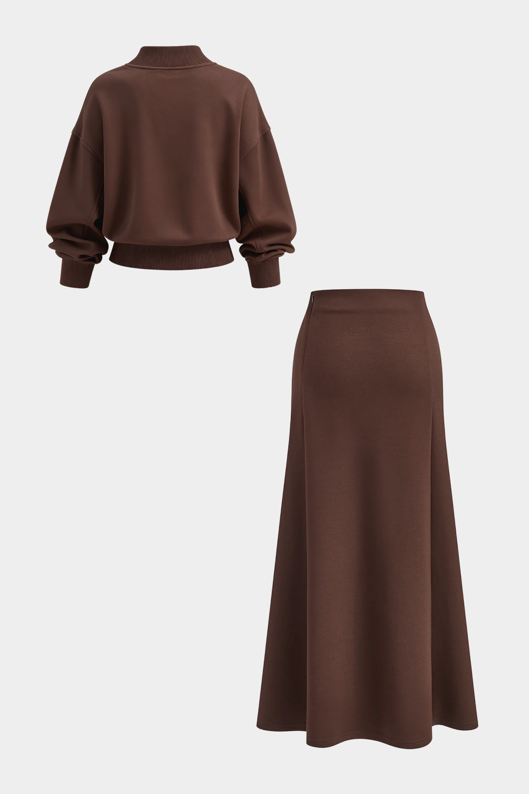 Solid V-Neck Long-Sleeve Top And Skirt Set