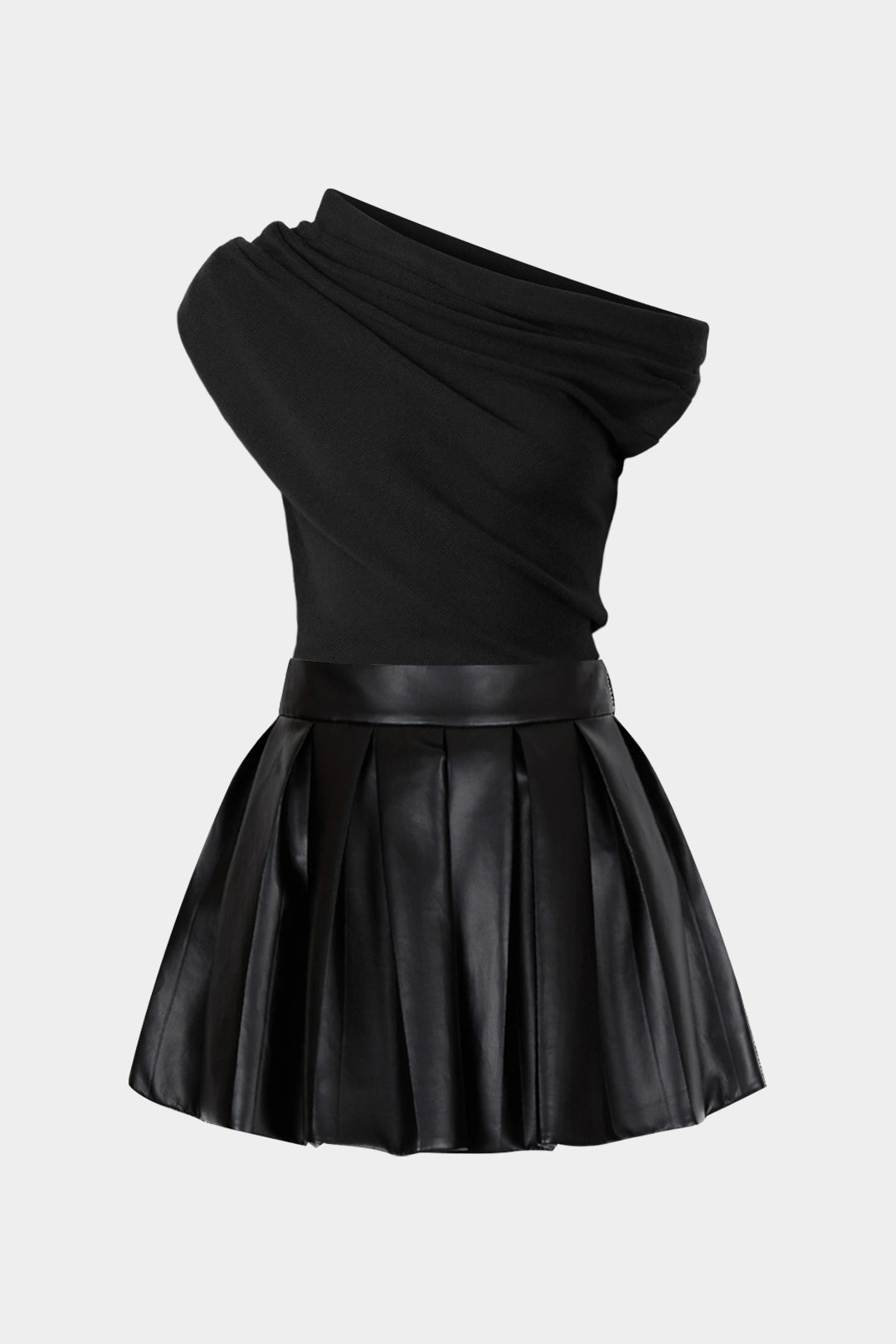 Faux Leather Ruched Pleated Sleeveless Mini Dress