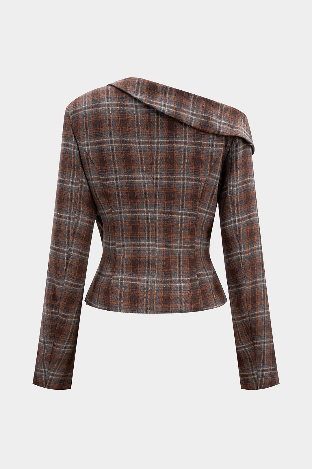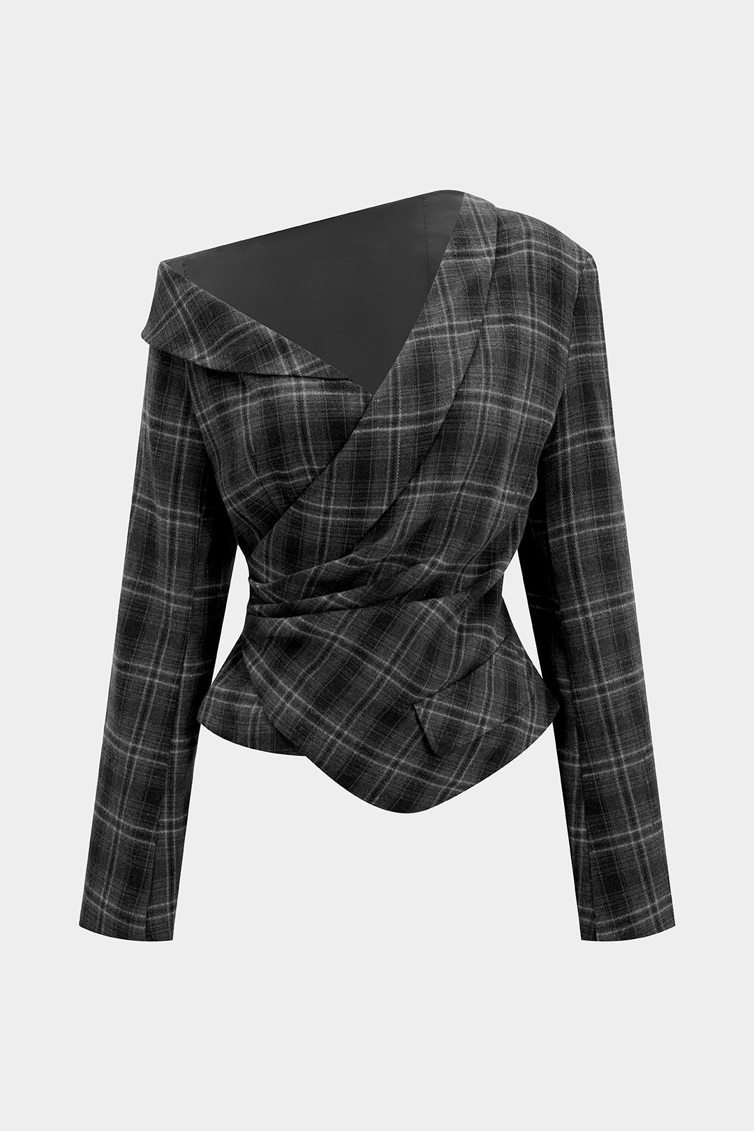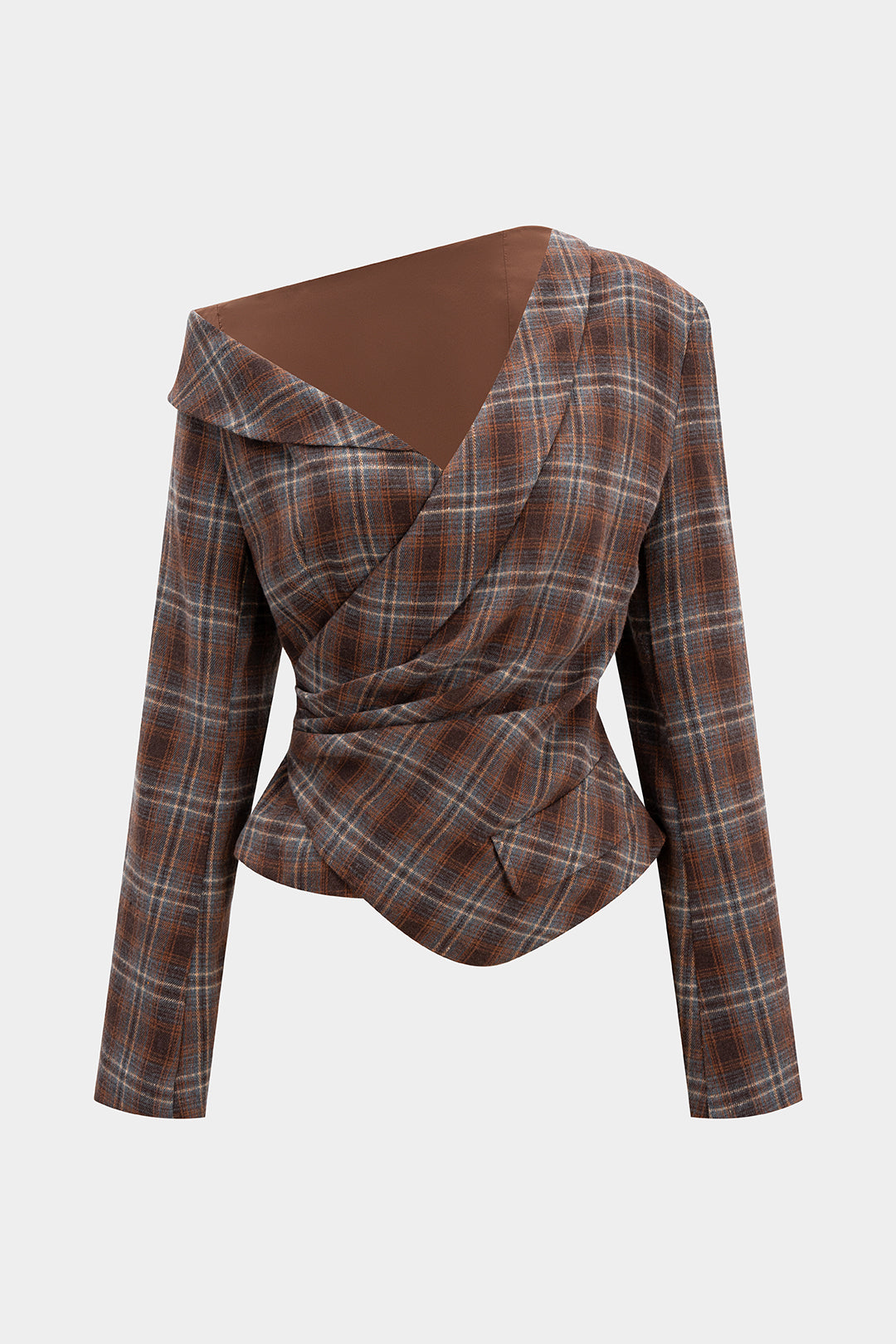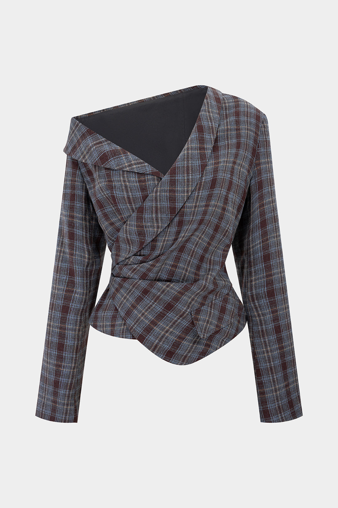Plaid Print Asymmetrical One Shoulder Ruched Long-Sleeve Top