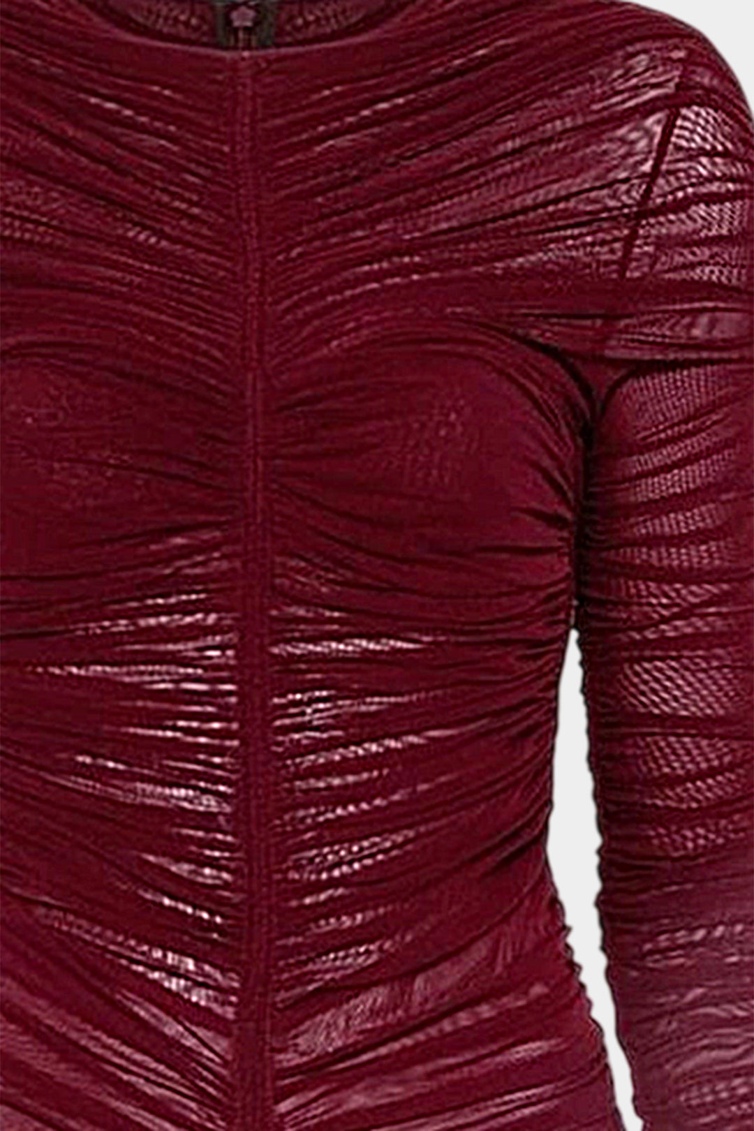 Mesh Round Neck Ruched Long-Sleeve Bodysuit