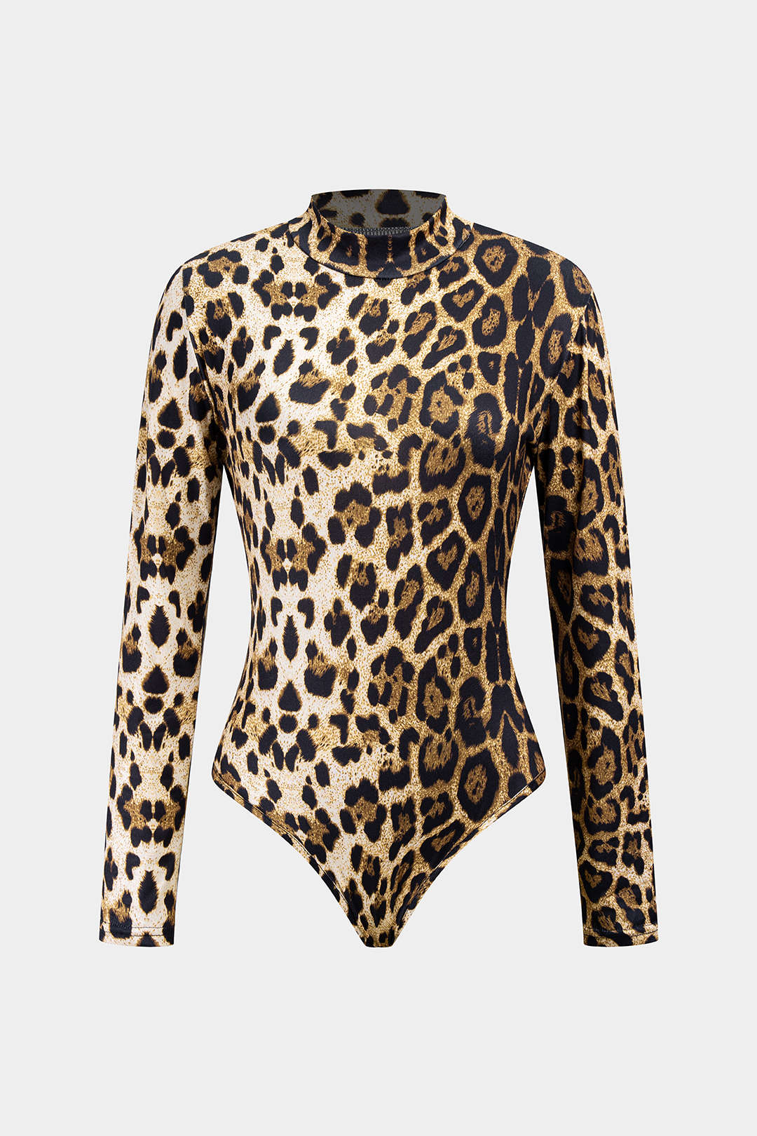Leopard Print Mock Neck Long Sleeve Bodysuit