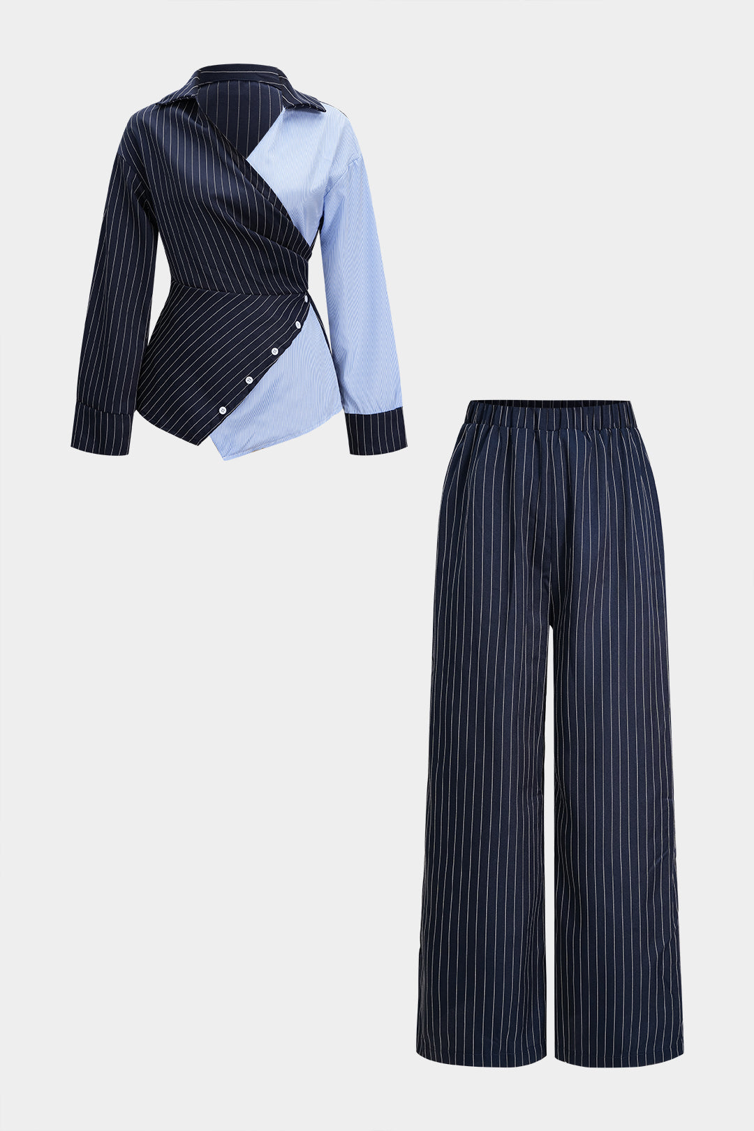 Stripes Print Contrast Tie Back Shirt And Straight Leg Pants Set