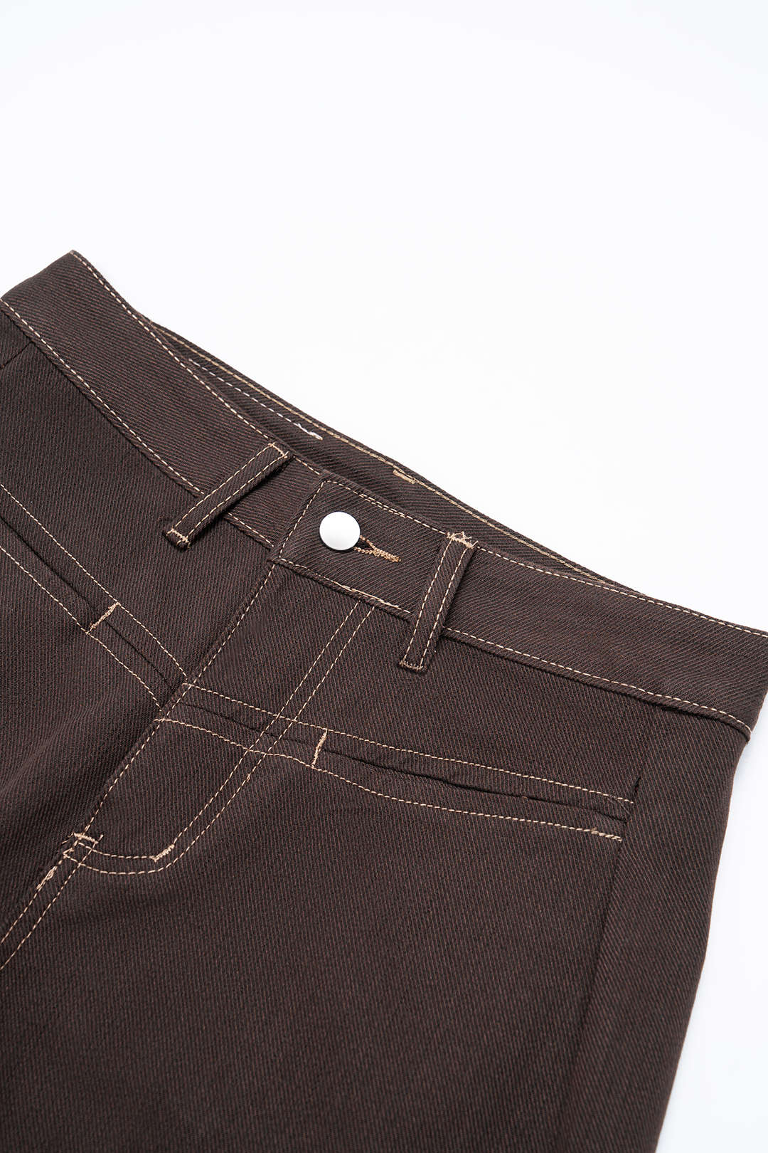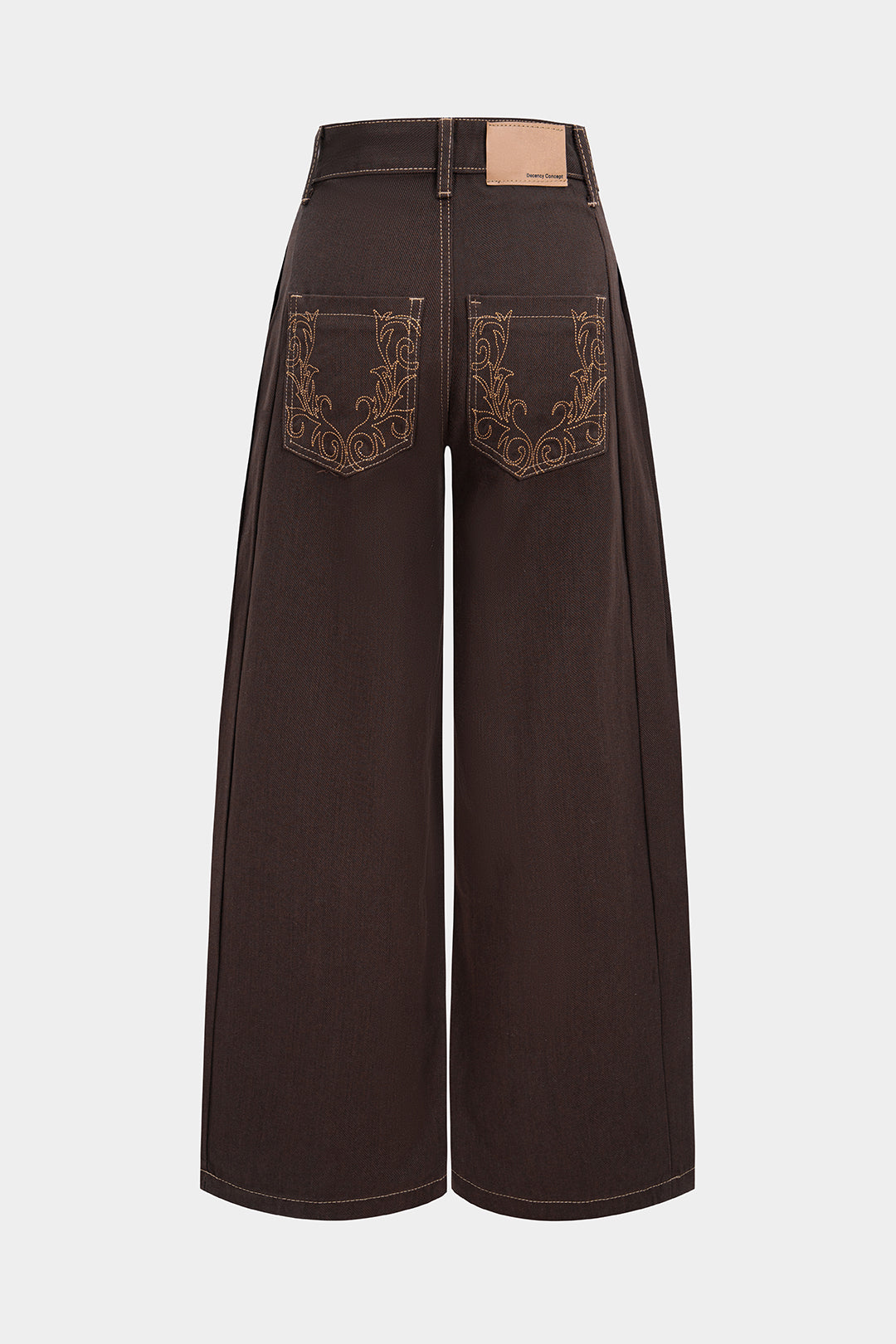 Denim Embroidery Zipper Pocket Wide Leg Jeans