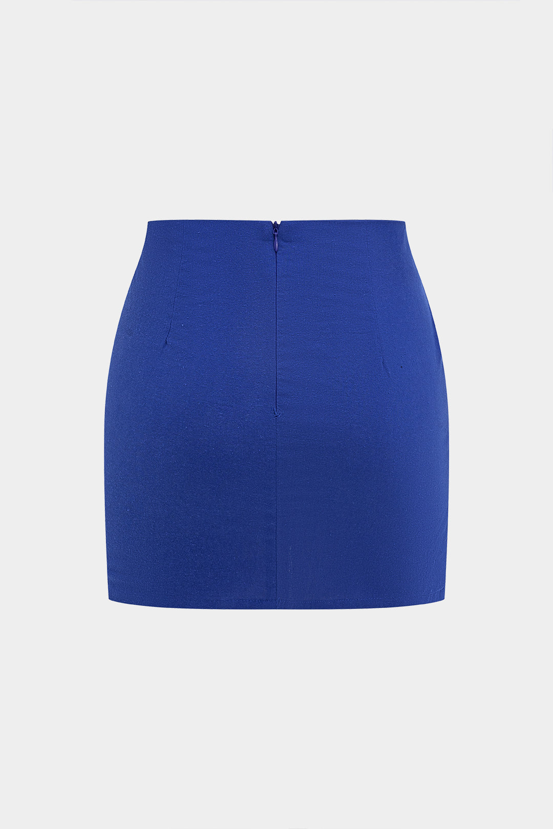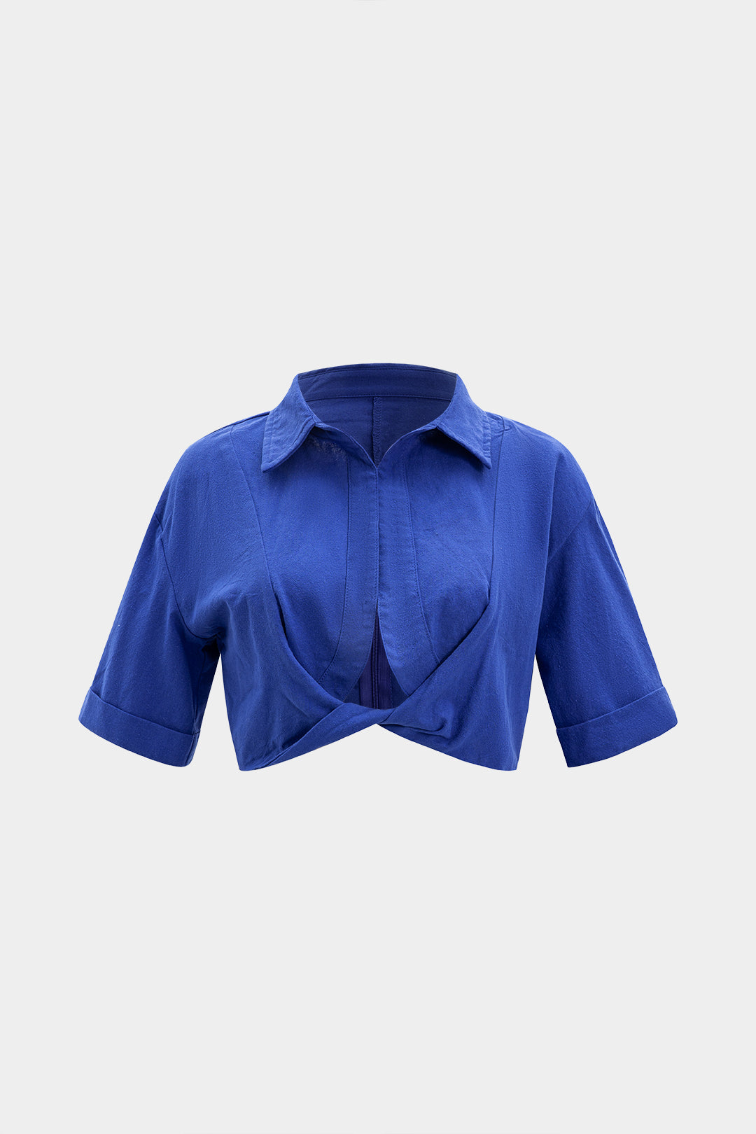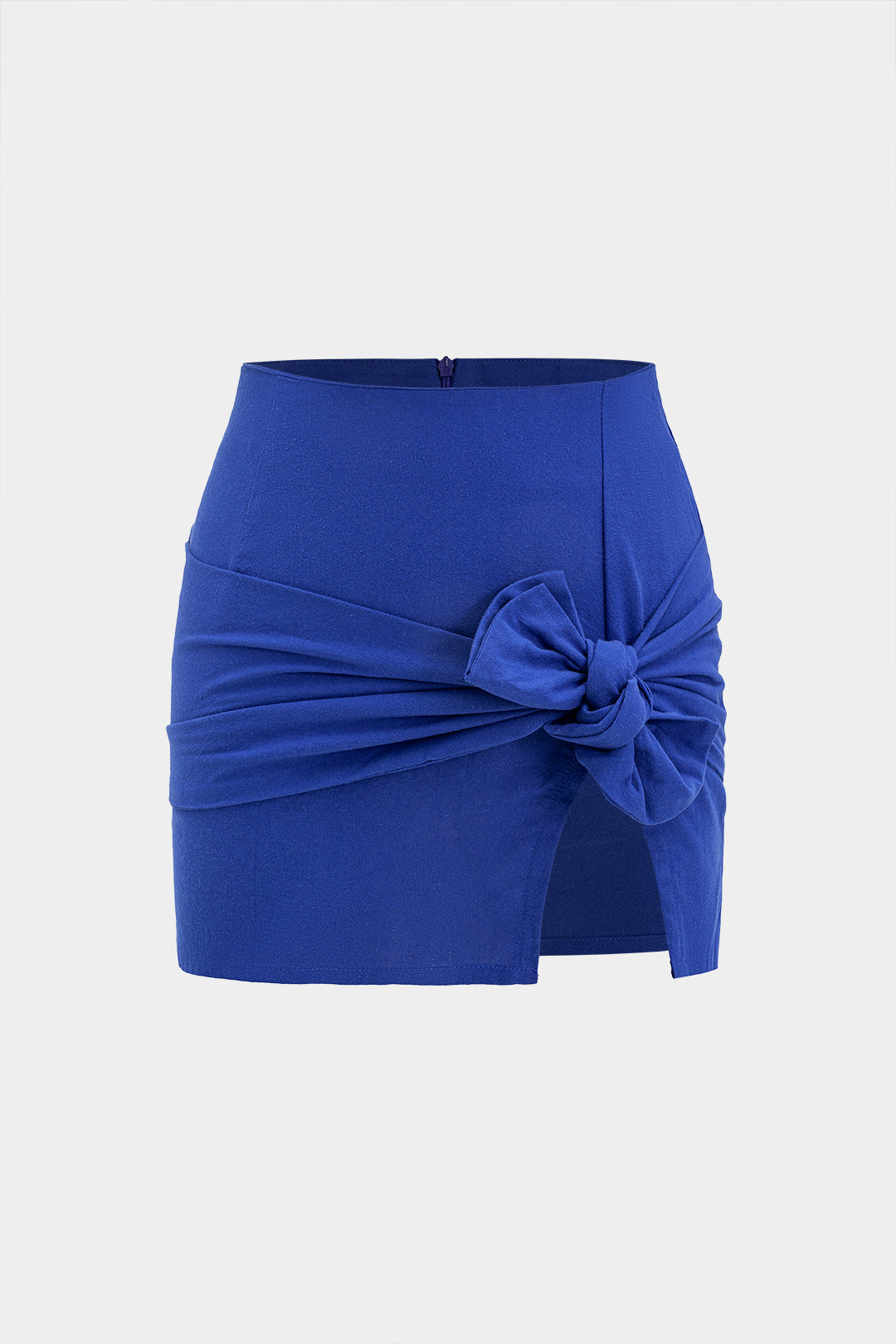 Solid Twist Knot Short-Sleeve Shirt And Tie-Up Skirt Set
