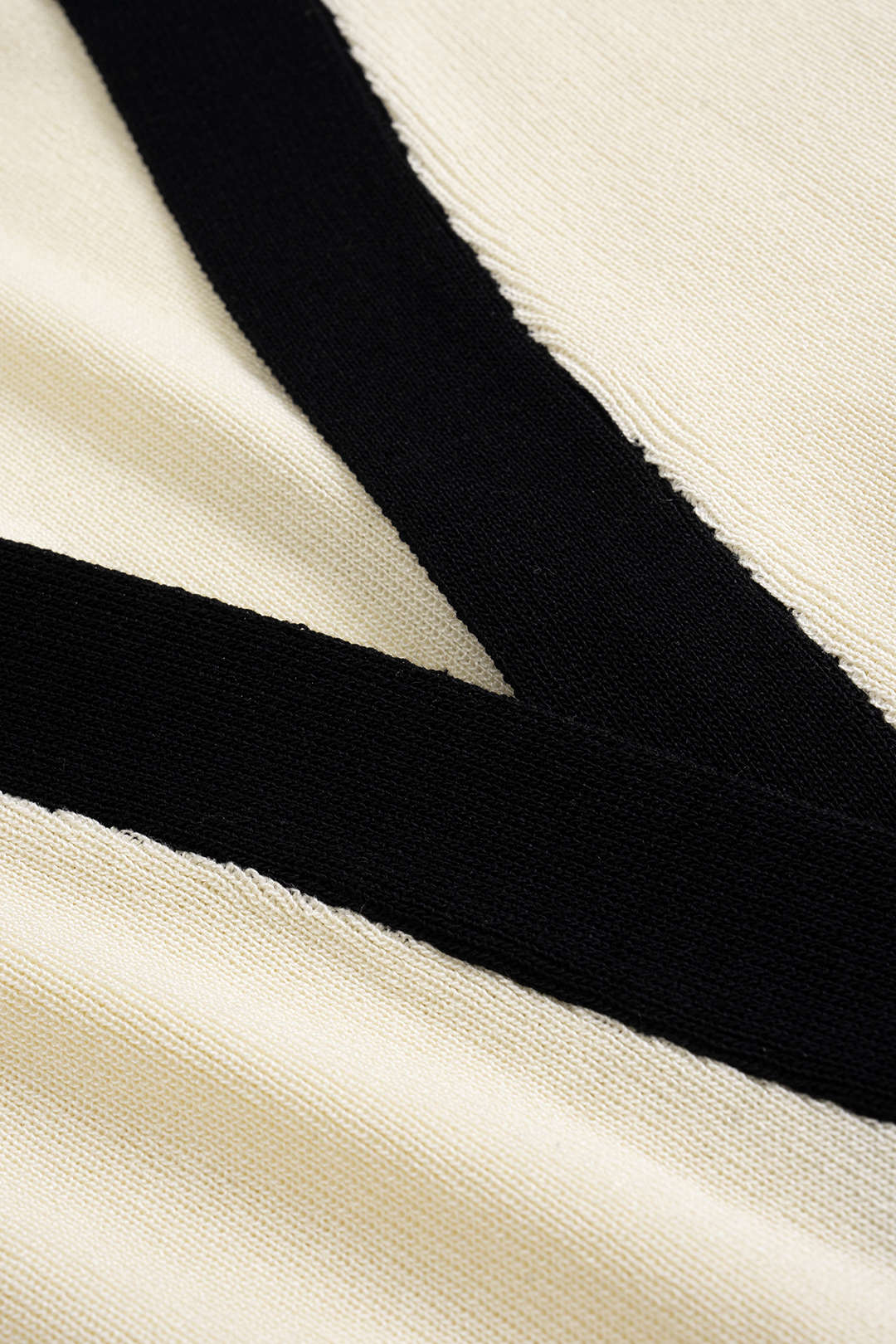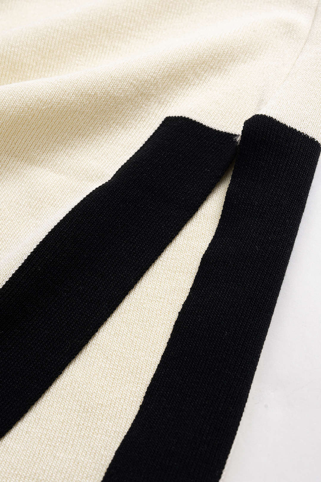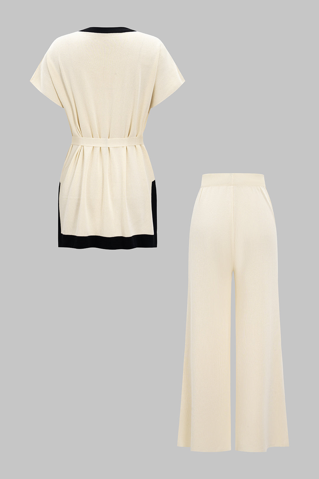 Knit Contrast Binding Tie-Front Top And Wide Leg Pants Set