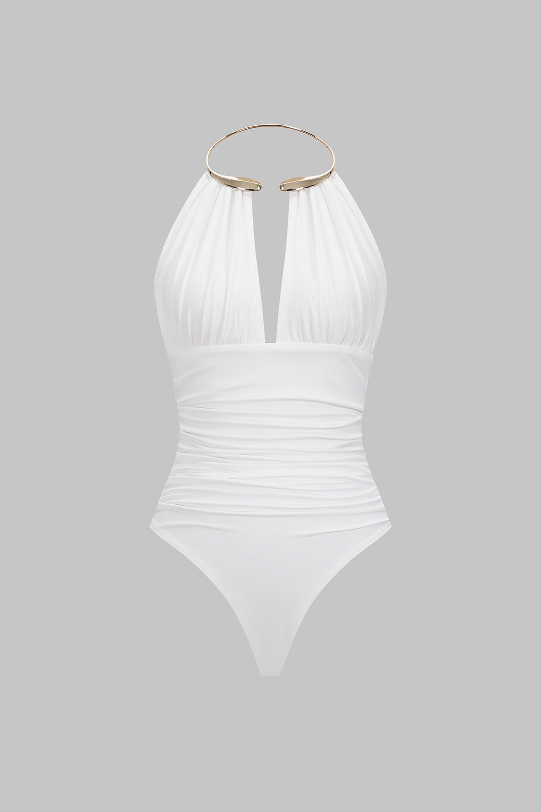Metallic Decor Halter Neck Ruched Sleeveless Backless Bodysuit