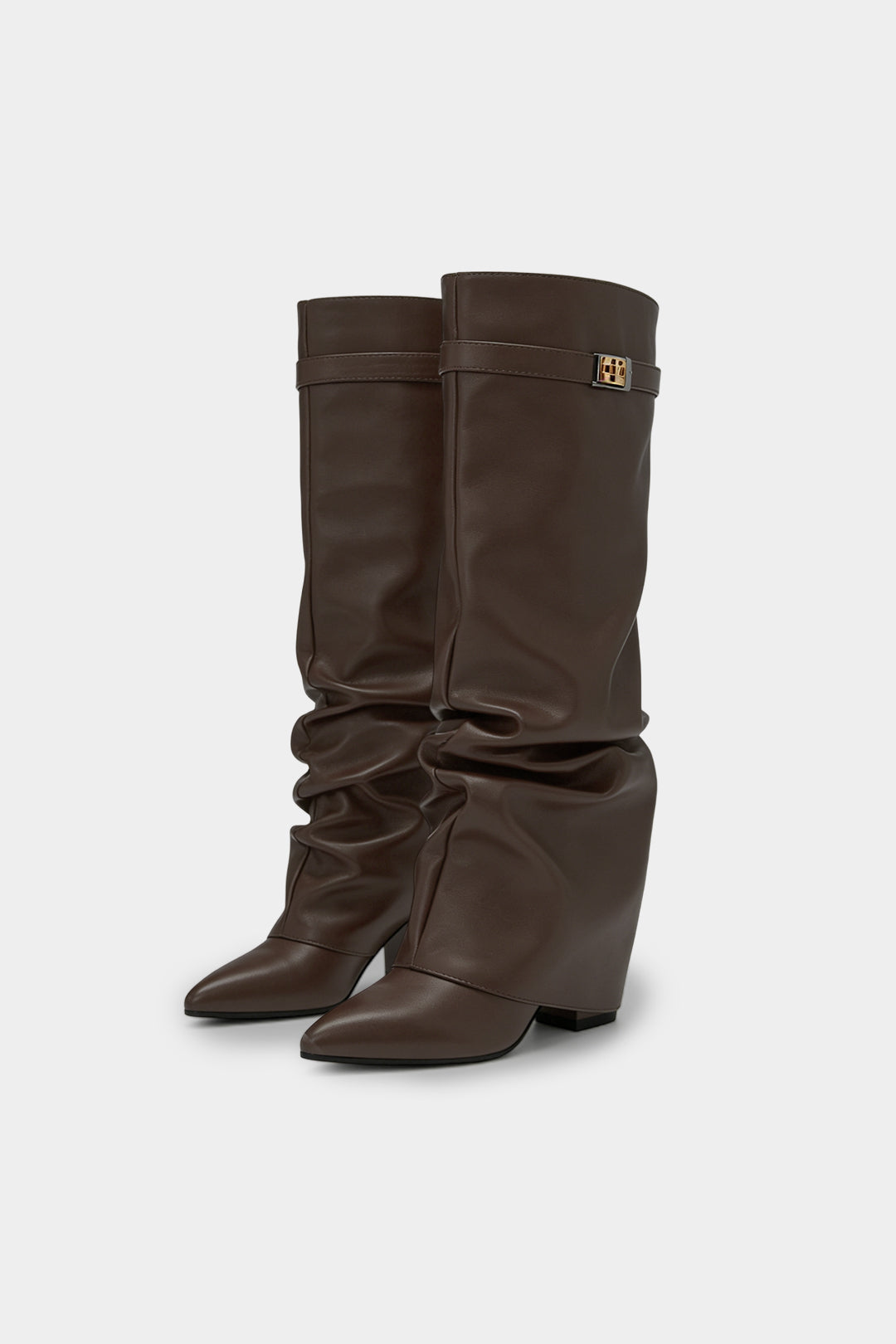 Leather Ruched Pointed Knee High Boots