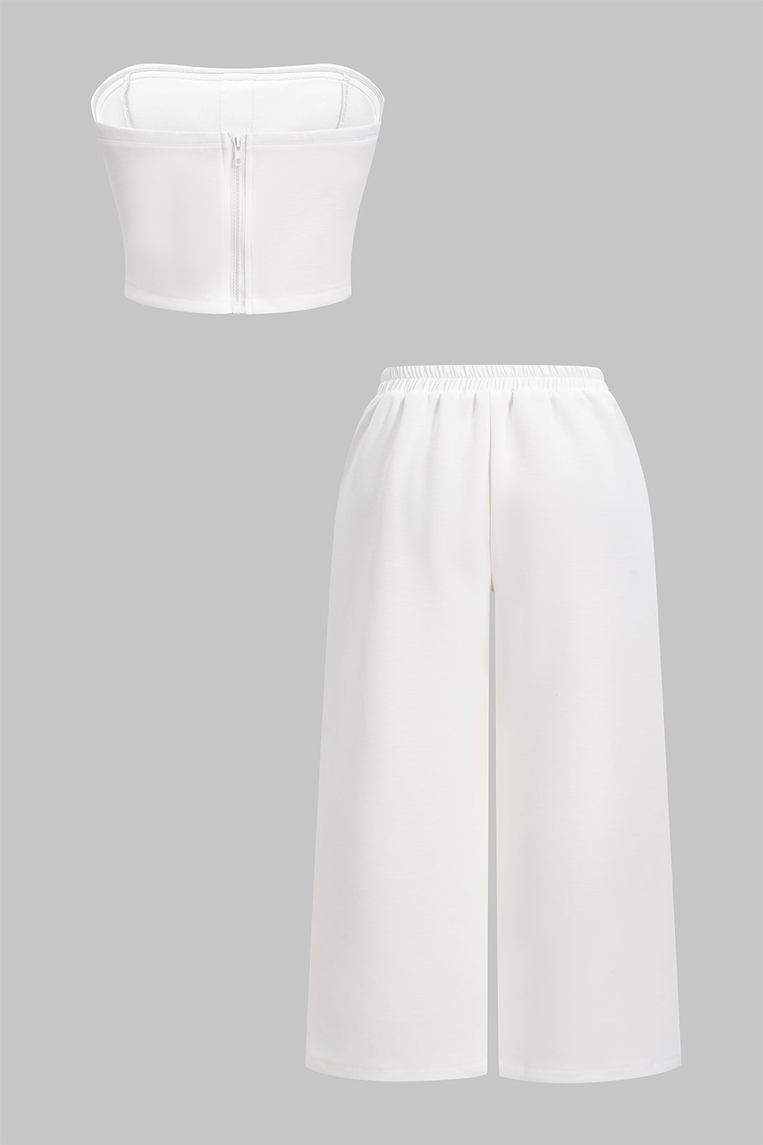 Plus Size Contrast Button Tube Top And High Waist Wide Leg Trousers Set