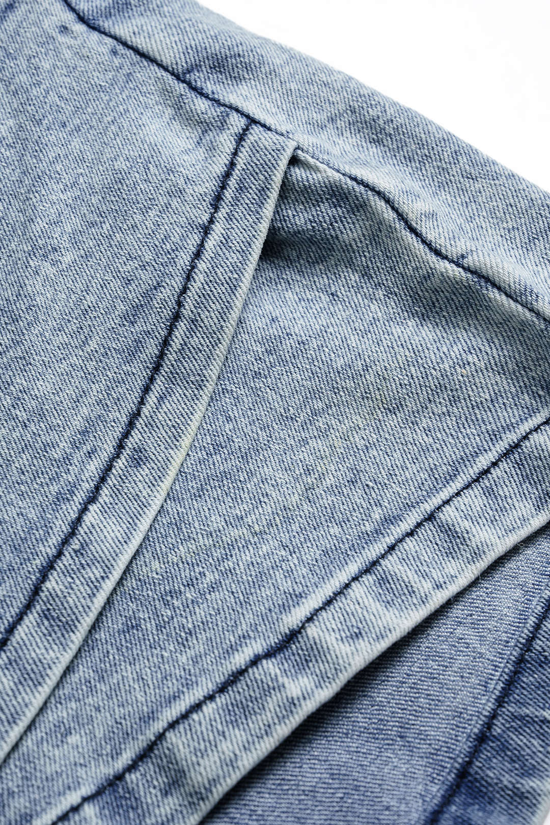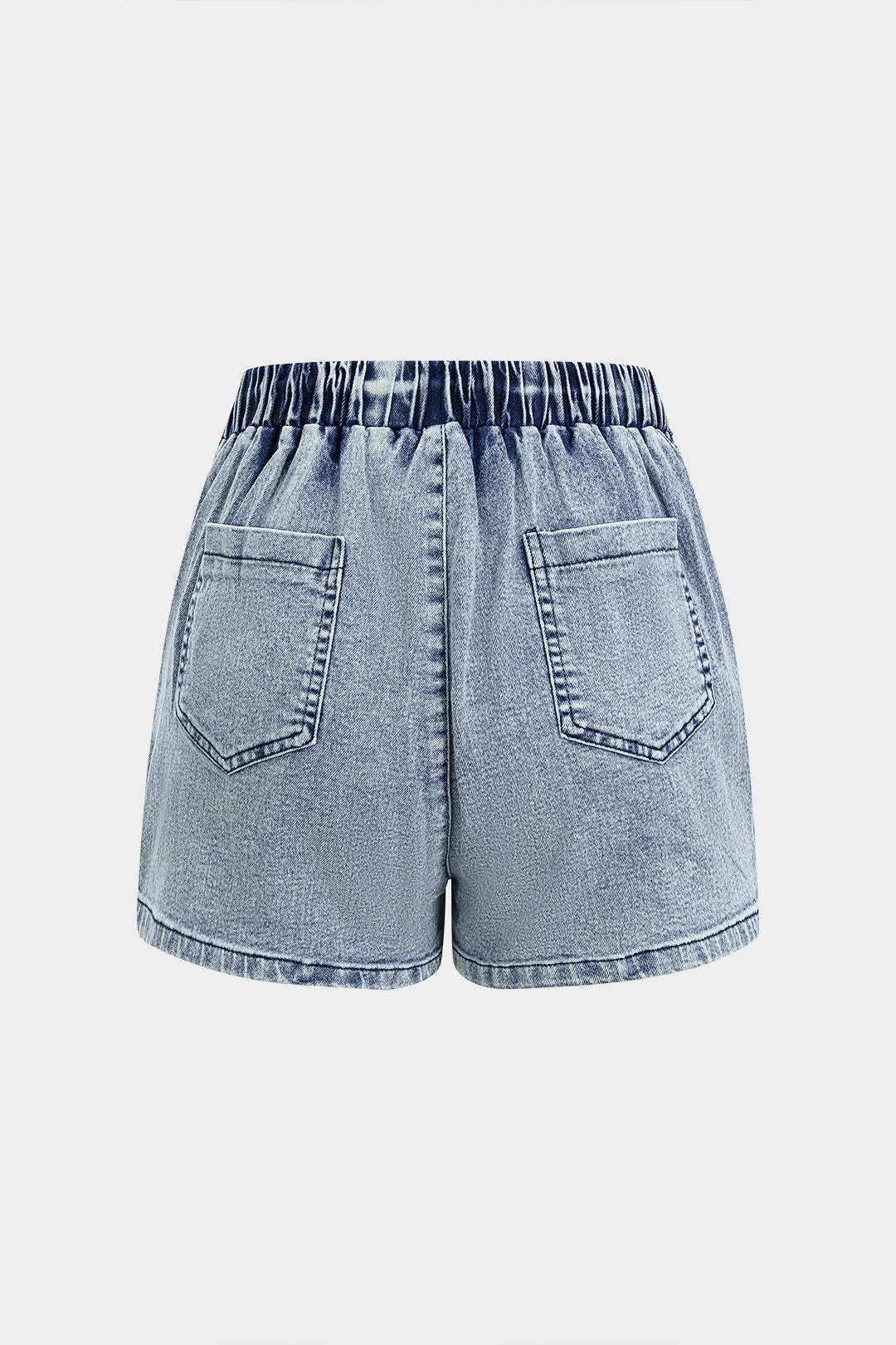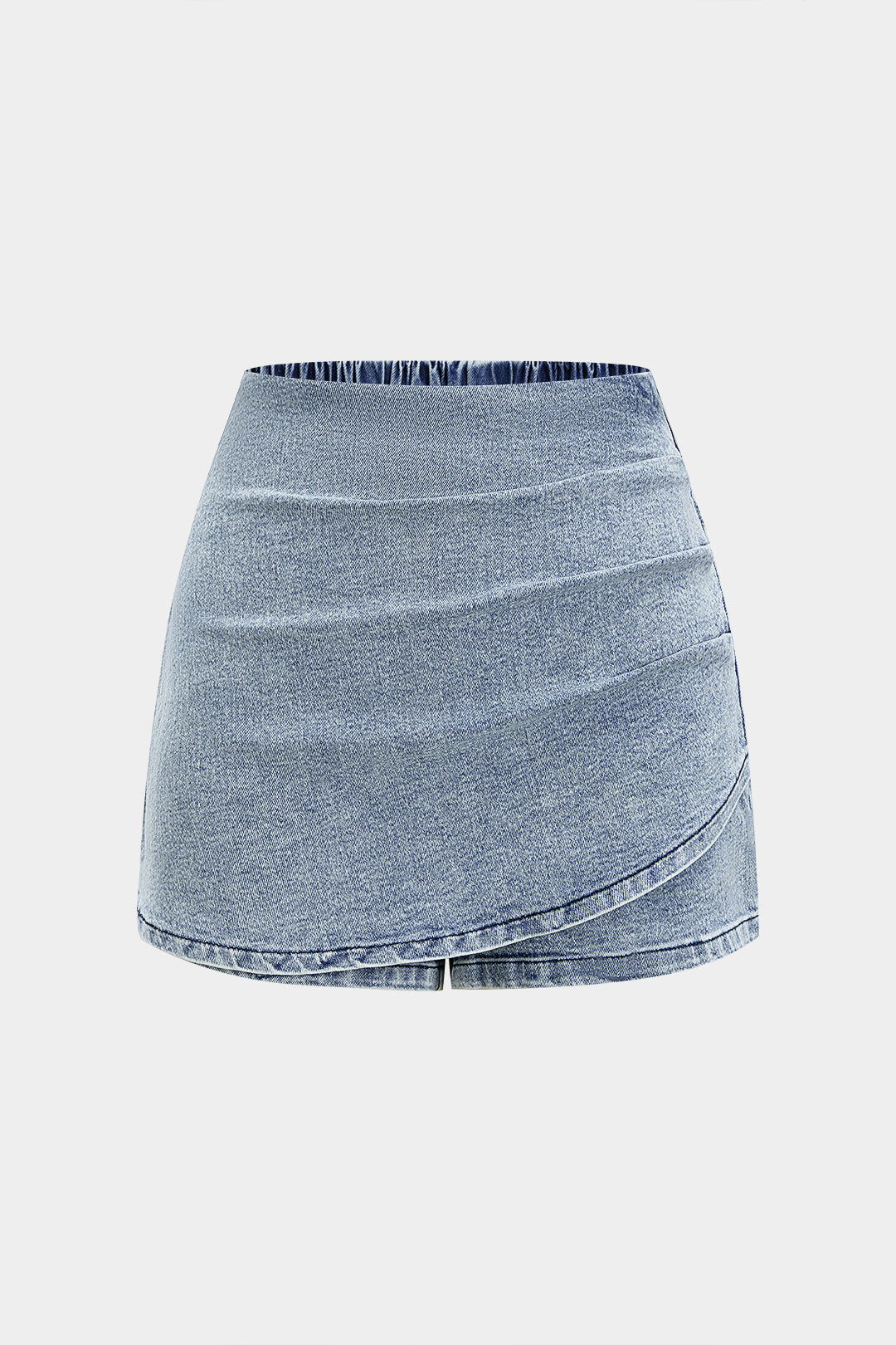 Denim Ruched Asymmetrical Shirred Waistband Pocket Skirt