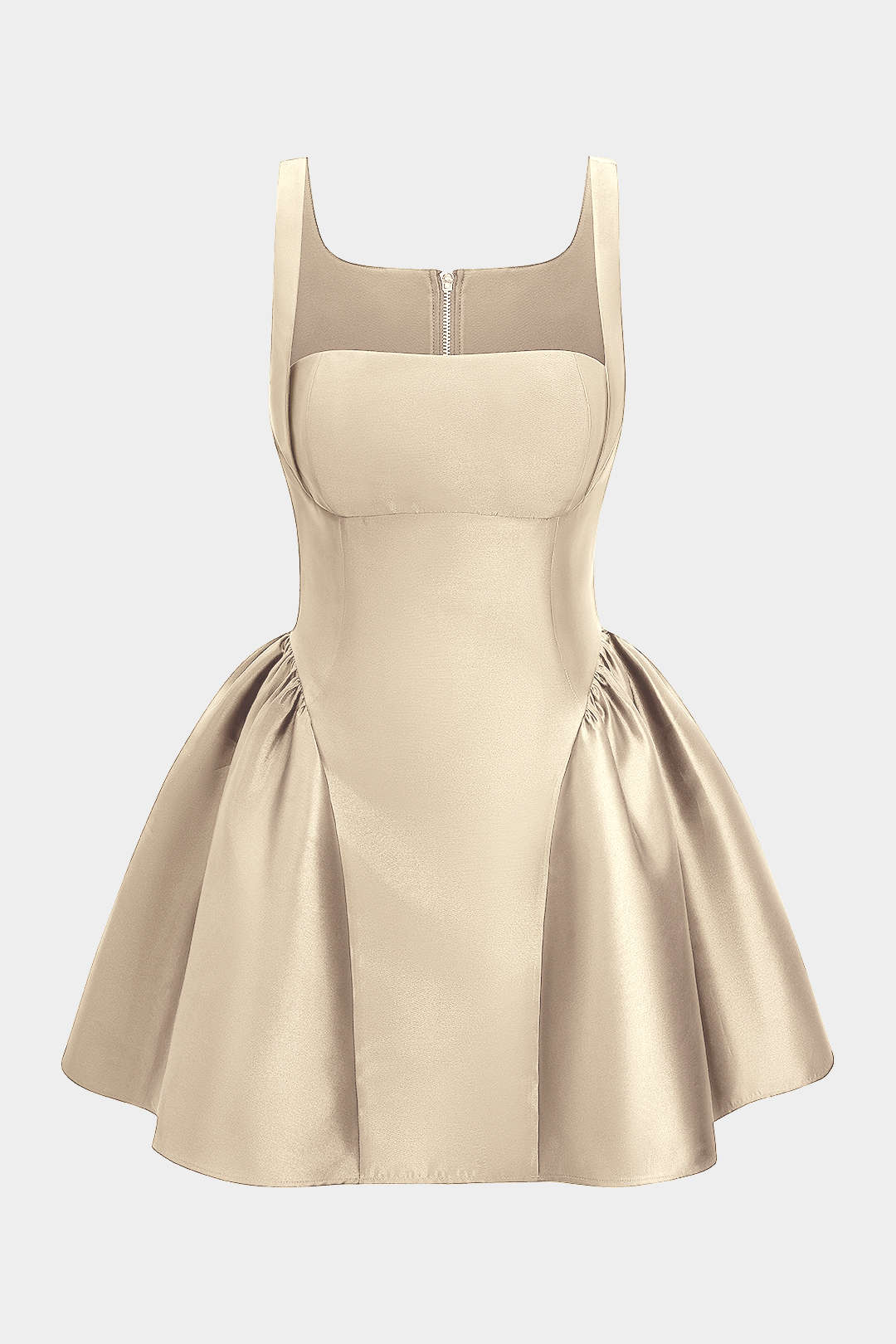 Satin Puff Hem Sleeveless Mini Dress