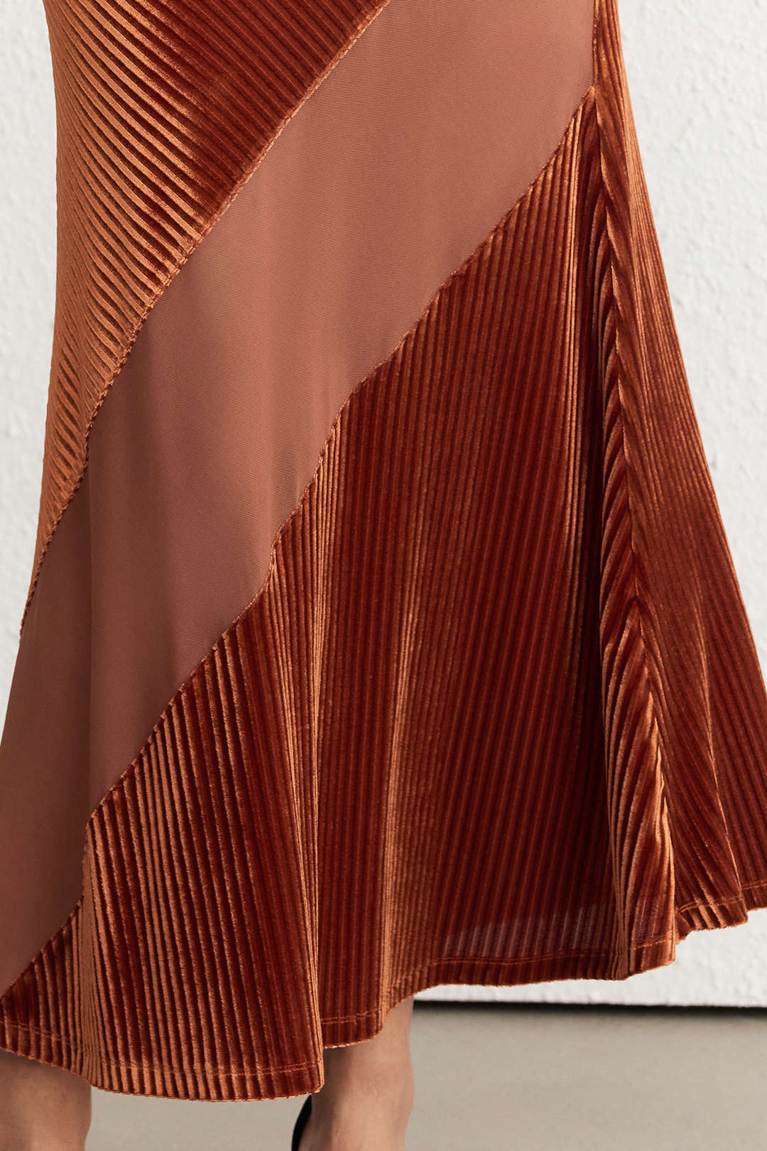 Velvet Patchwork Mesh A-Line Skirt