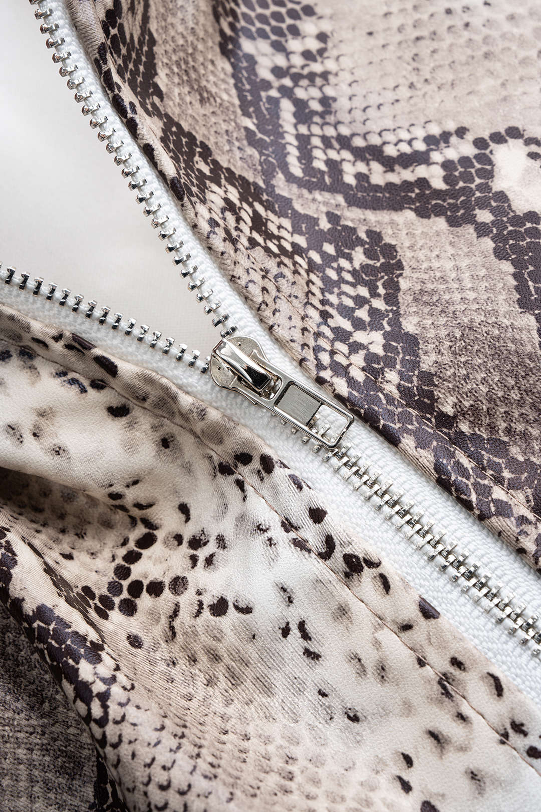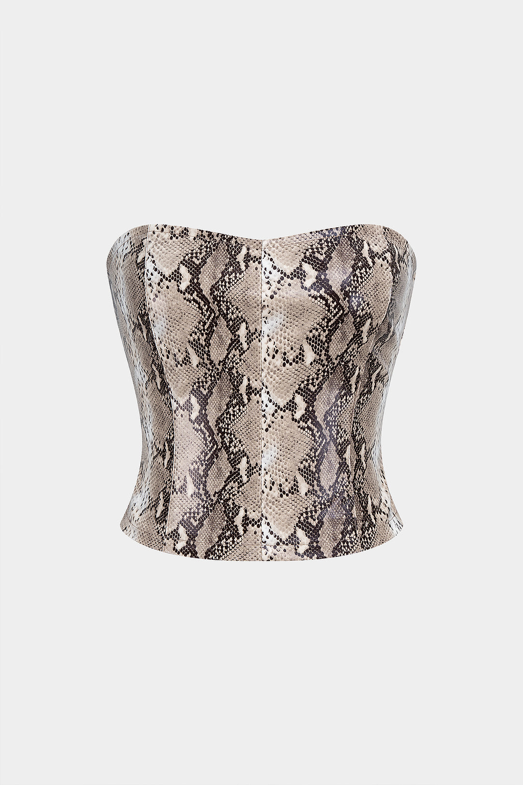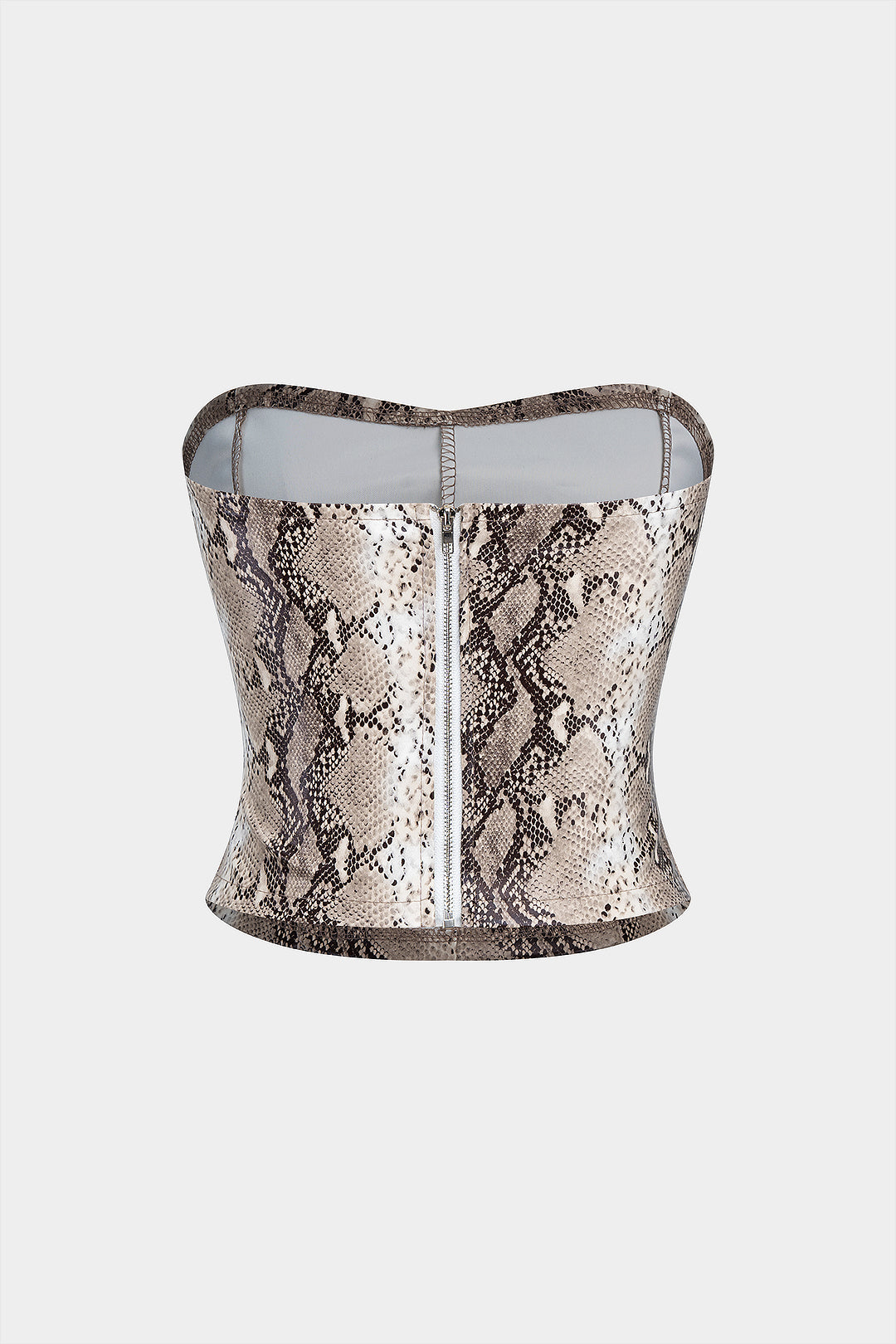 Snake Skin Print Faux Leather Zipper Strapless Tube Top