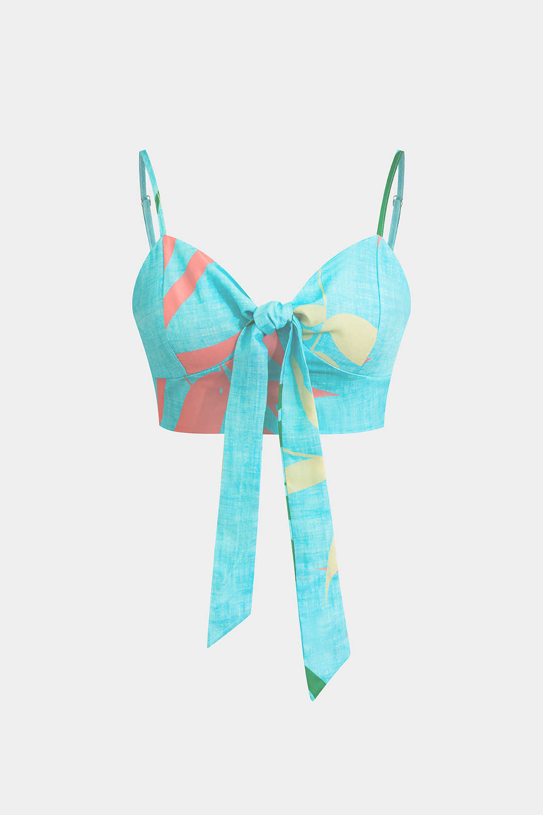 Top et pantalon de nœud d'impression à feuilles de feuilles de bambou et pantalon