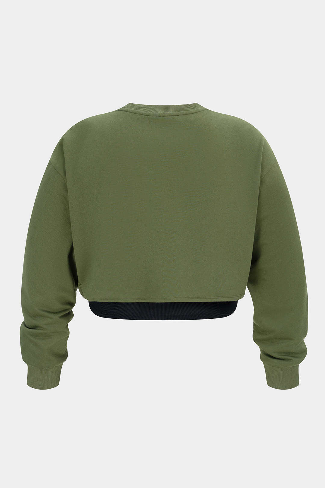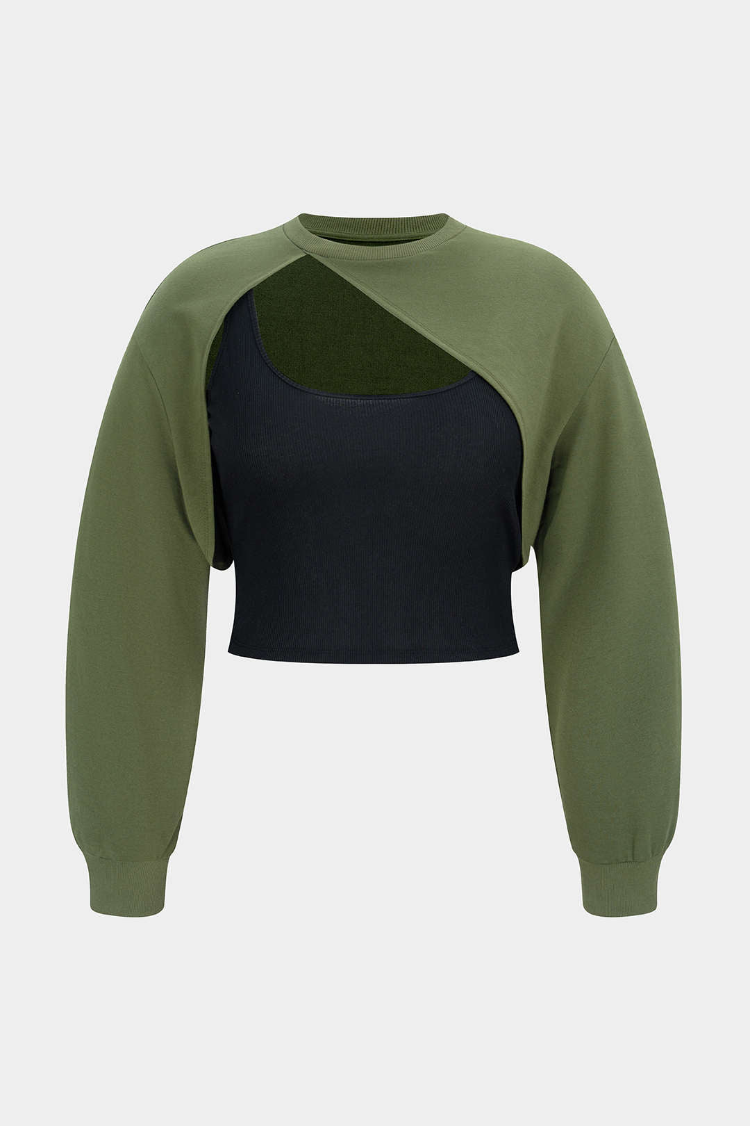 Plus Size Contrast Asymmetrical Cut Out Long-Sleeve Top