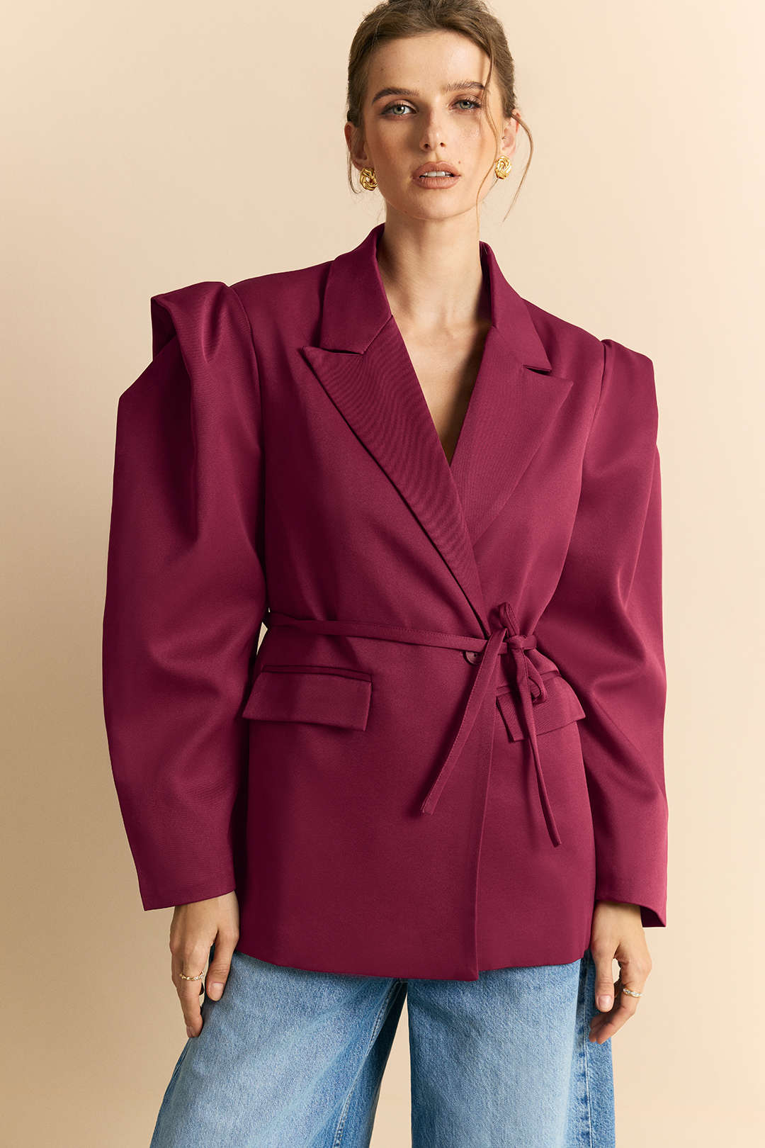 Tie-Up One Button Shoulder Pads Blazer