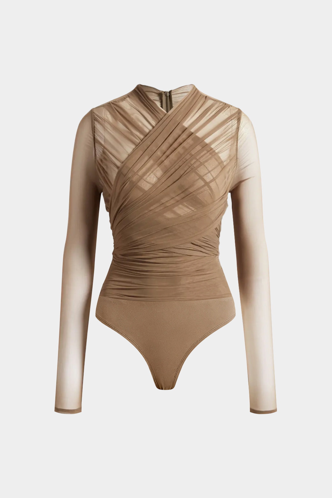 Mesh Crossed Ruched Long Sleeve Bodysuit