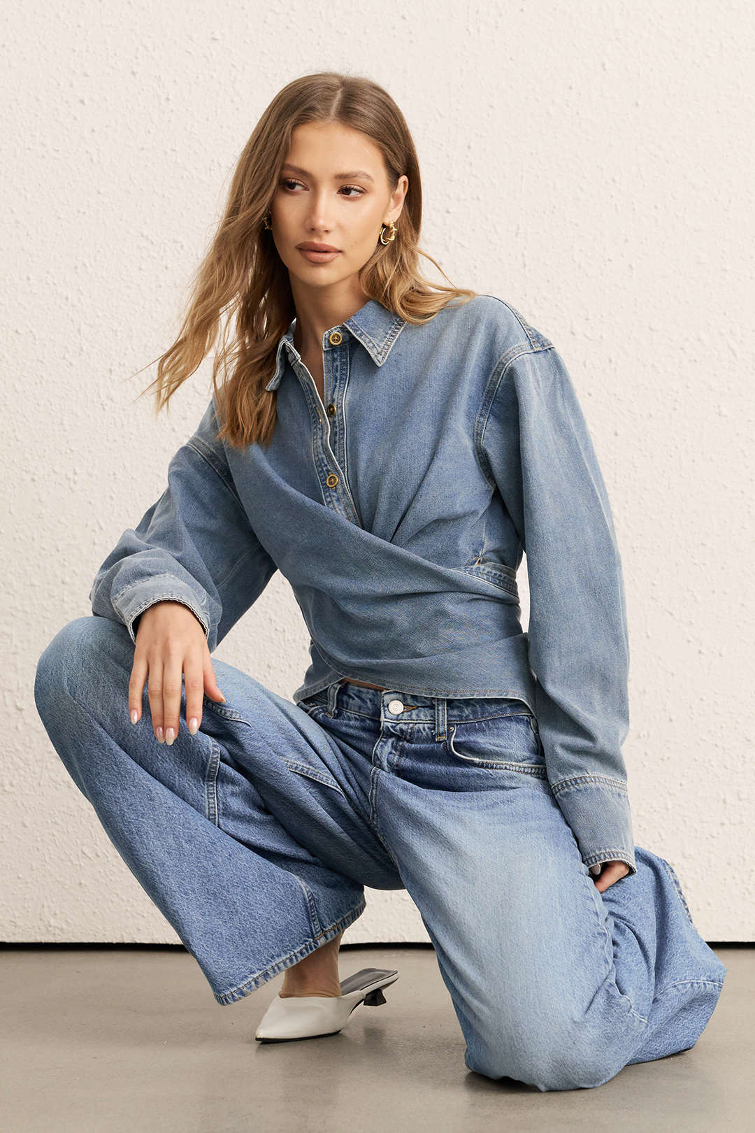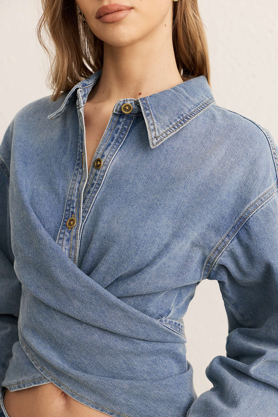 Denim Ruched Crossed Outerwear