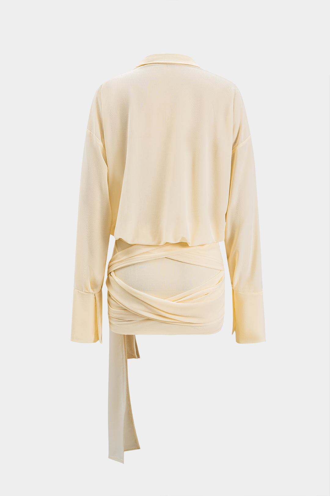 Ruched Tie Knot Button Long Sleeve Mini Dress