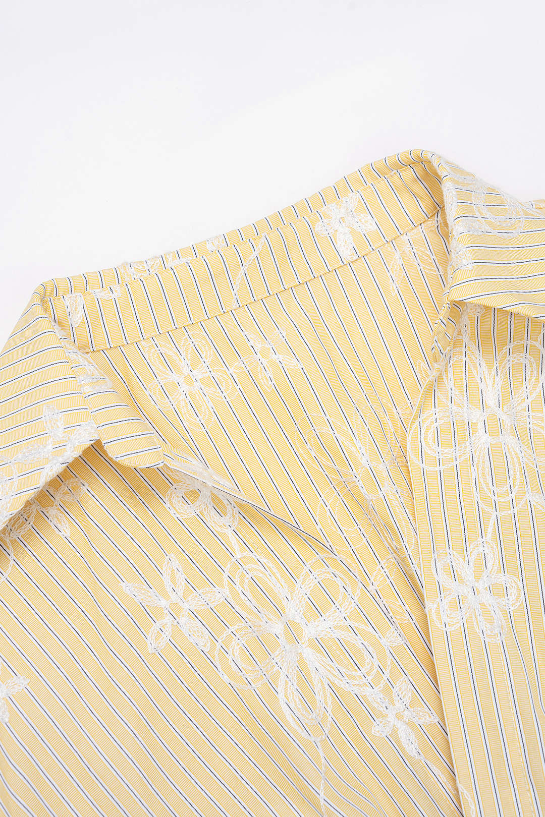 Stripes Floral Print Textured V-Neck Ruched Short-Sleeve Shirt
