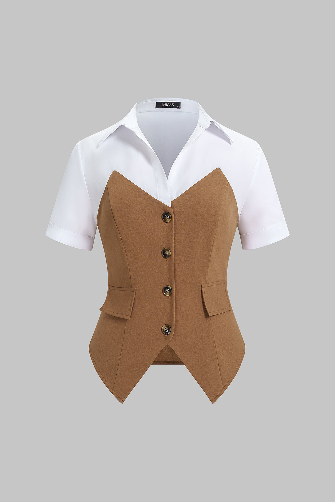 Contrast Lapel Short Sleeve Top