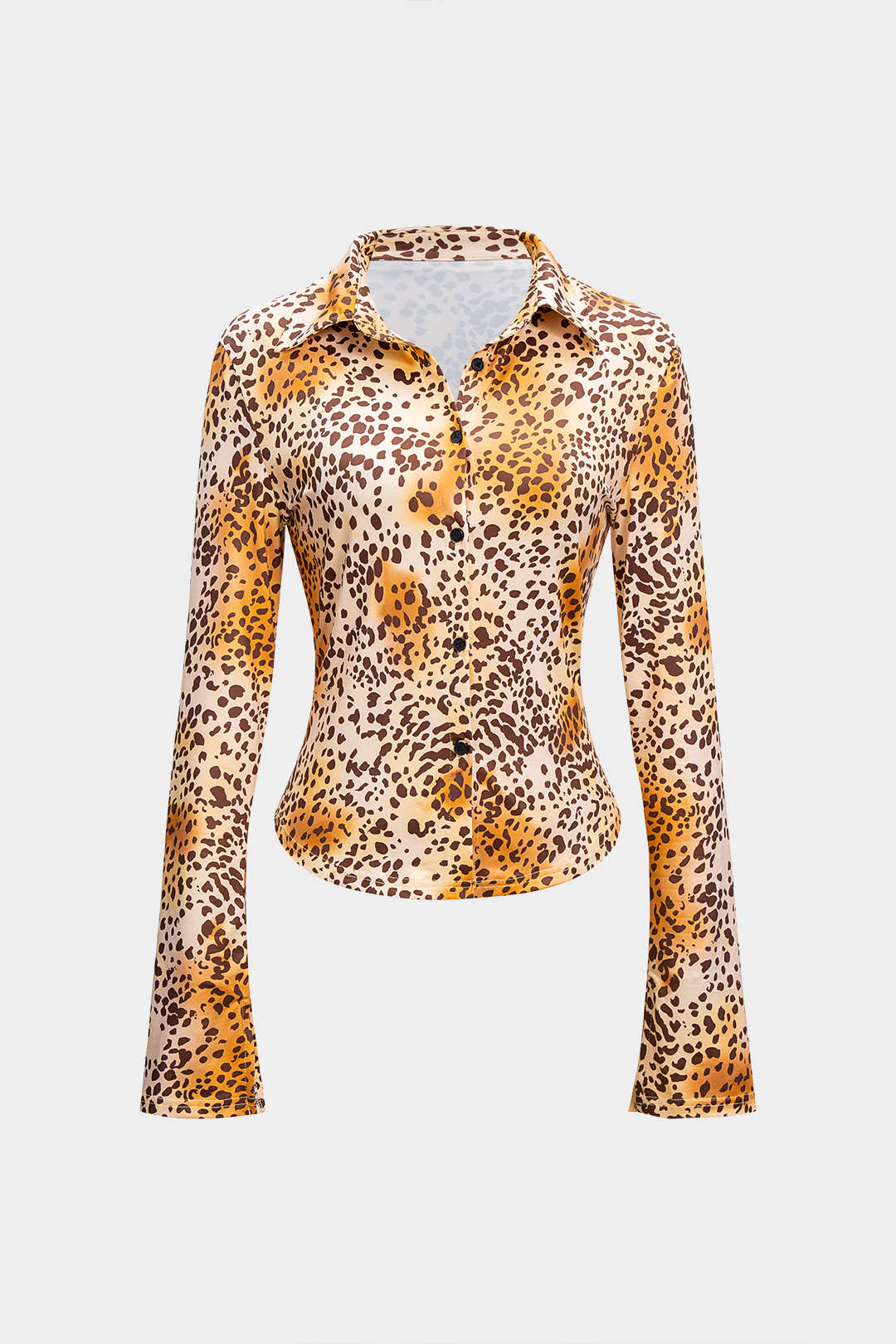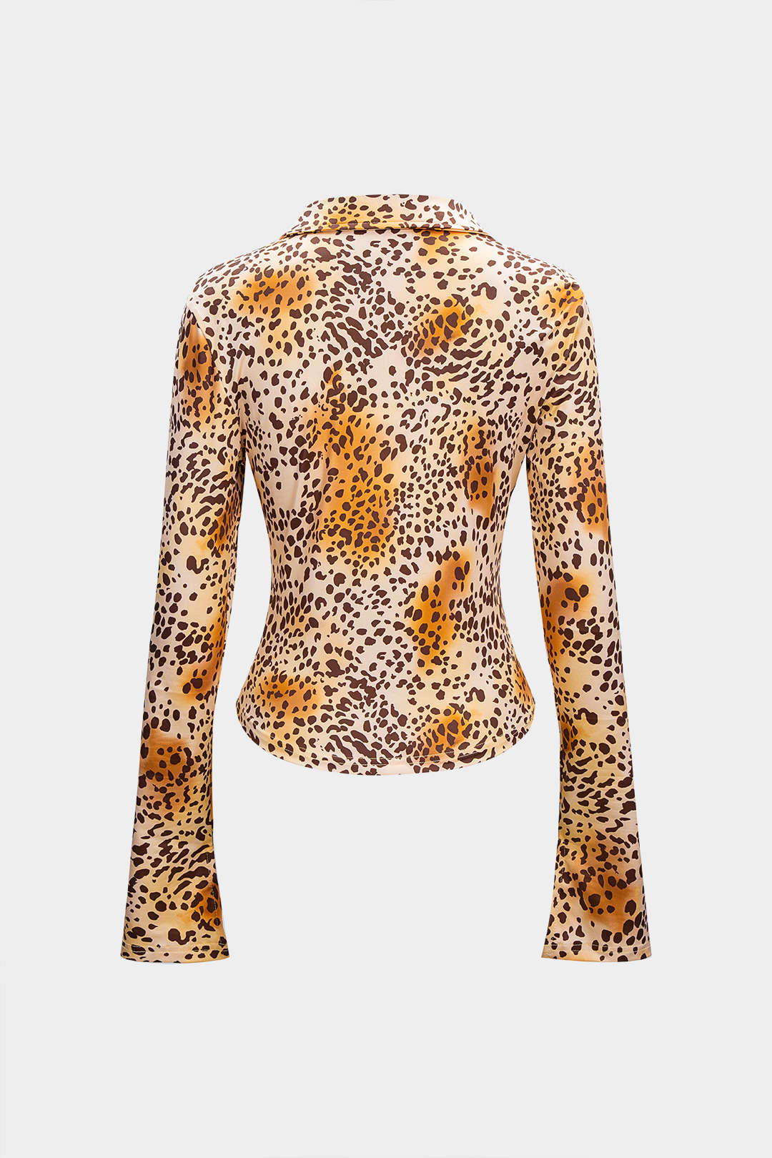 Leopard Print Lapel Long-Sleeve Top