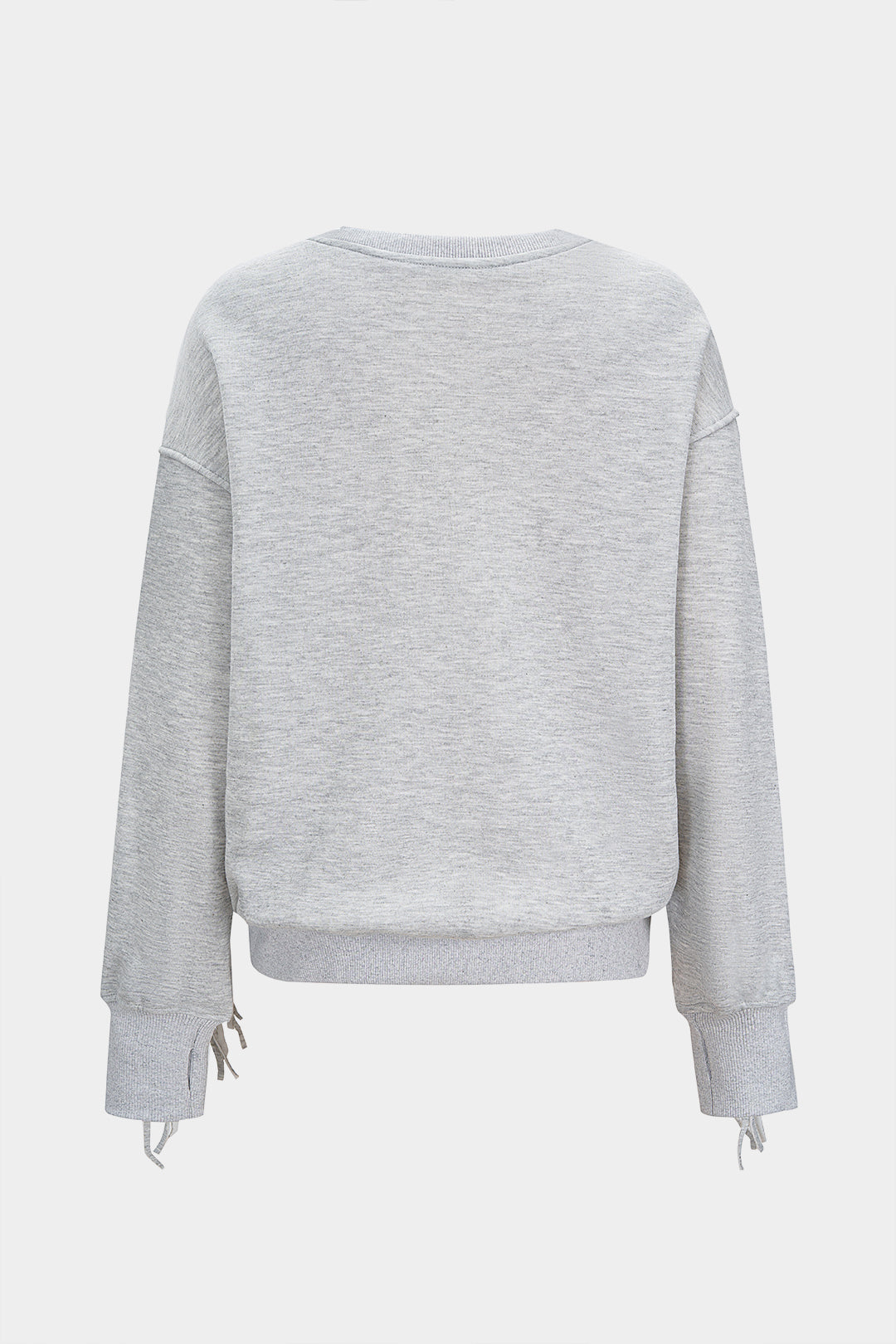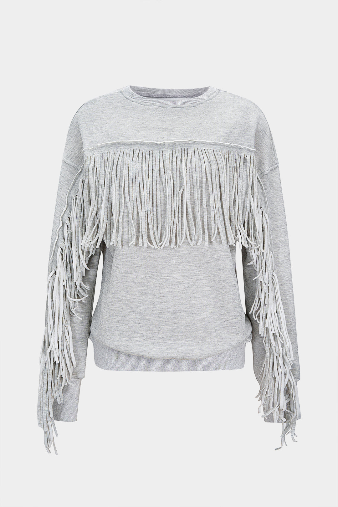 Solid Round Neck Fringe Sweatshirt