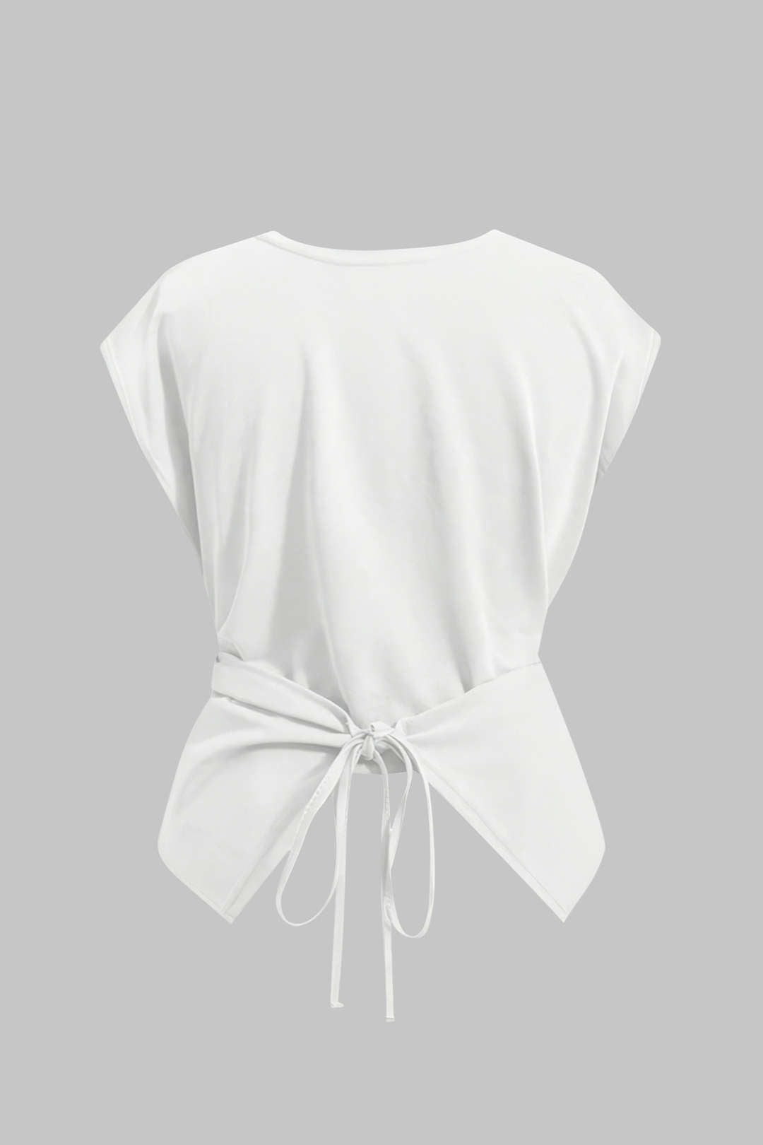 Plus Size Round Neck Short Sleeve Tie T-Shirt