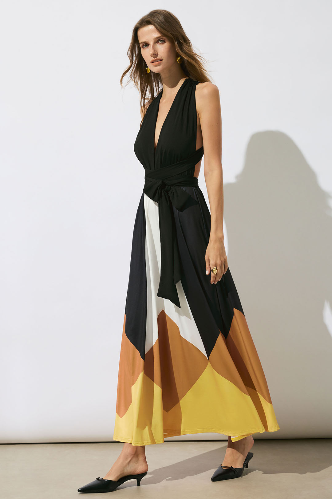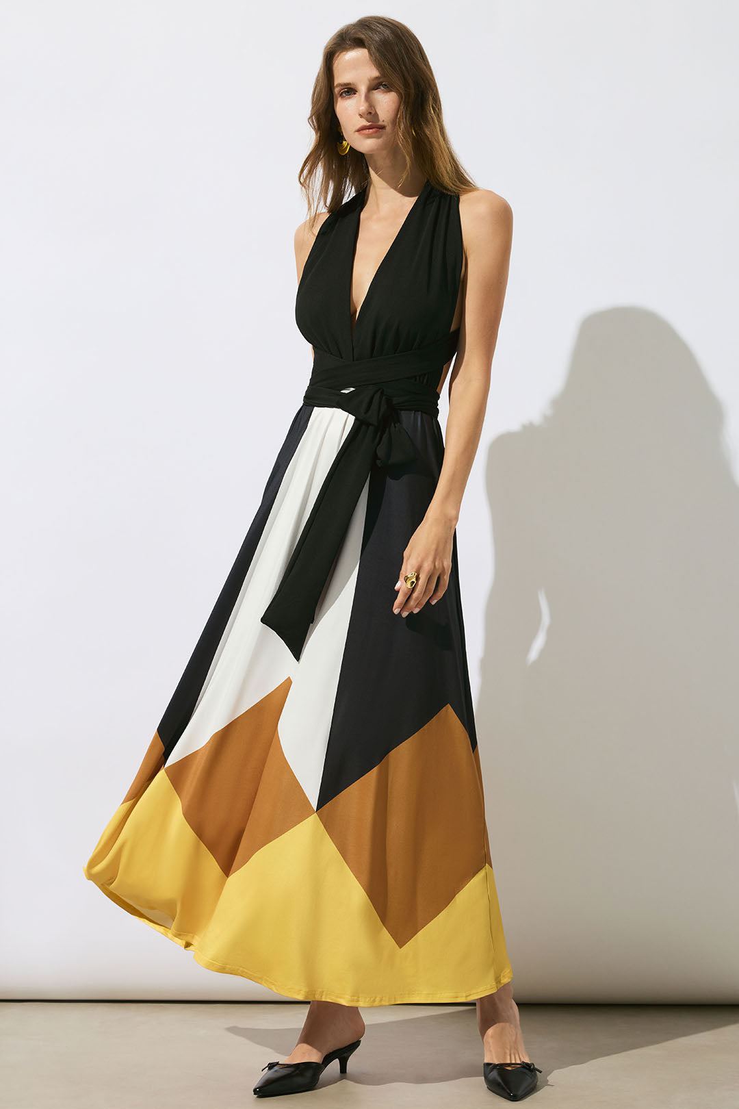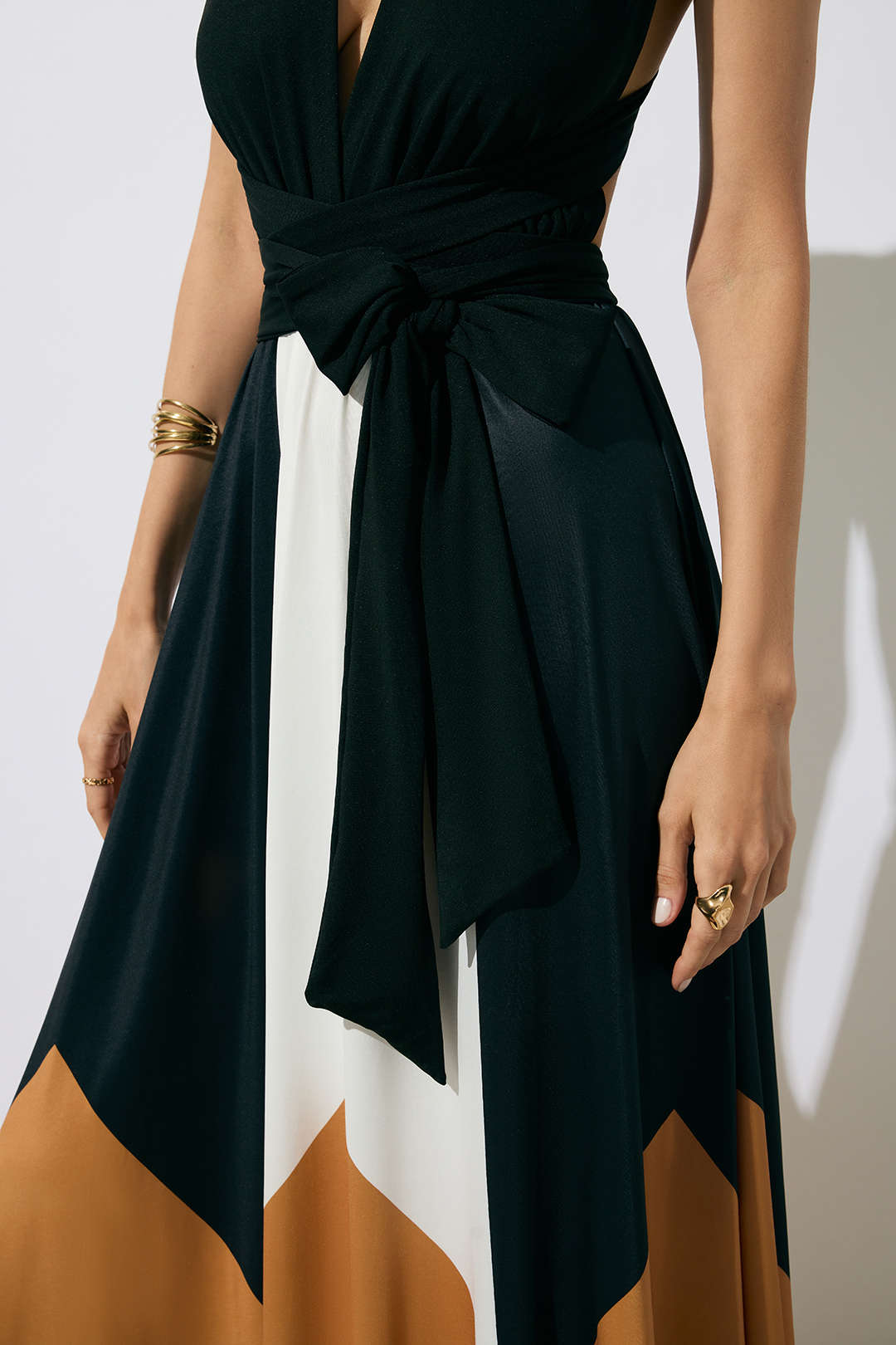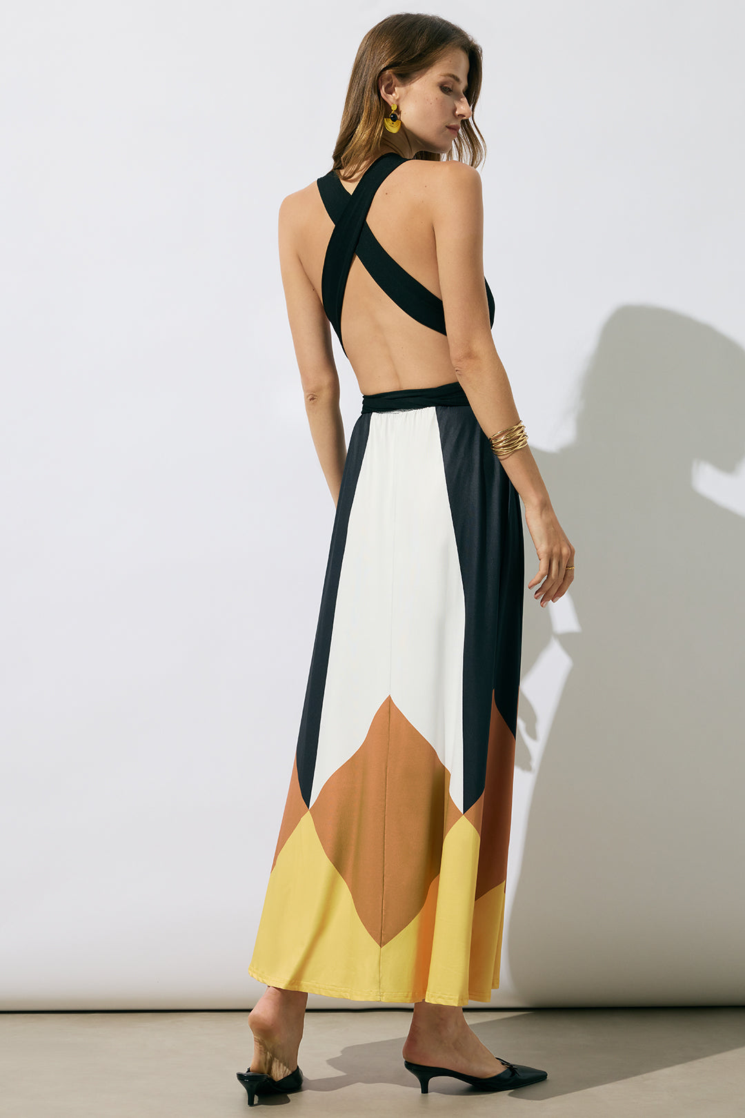 Color Block Print Tie-Up Backless Sleeveless Maxi Dress