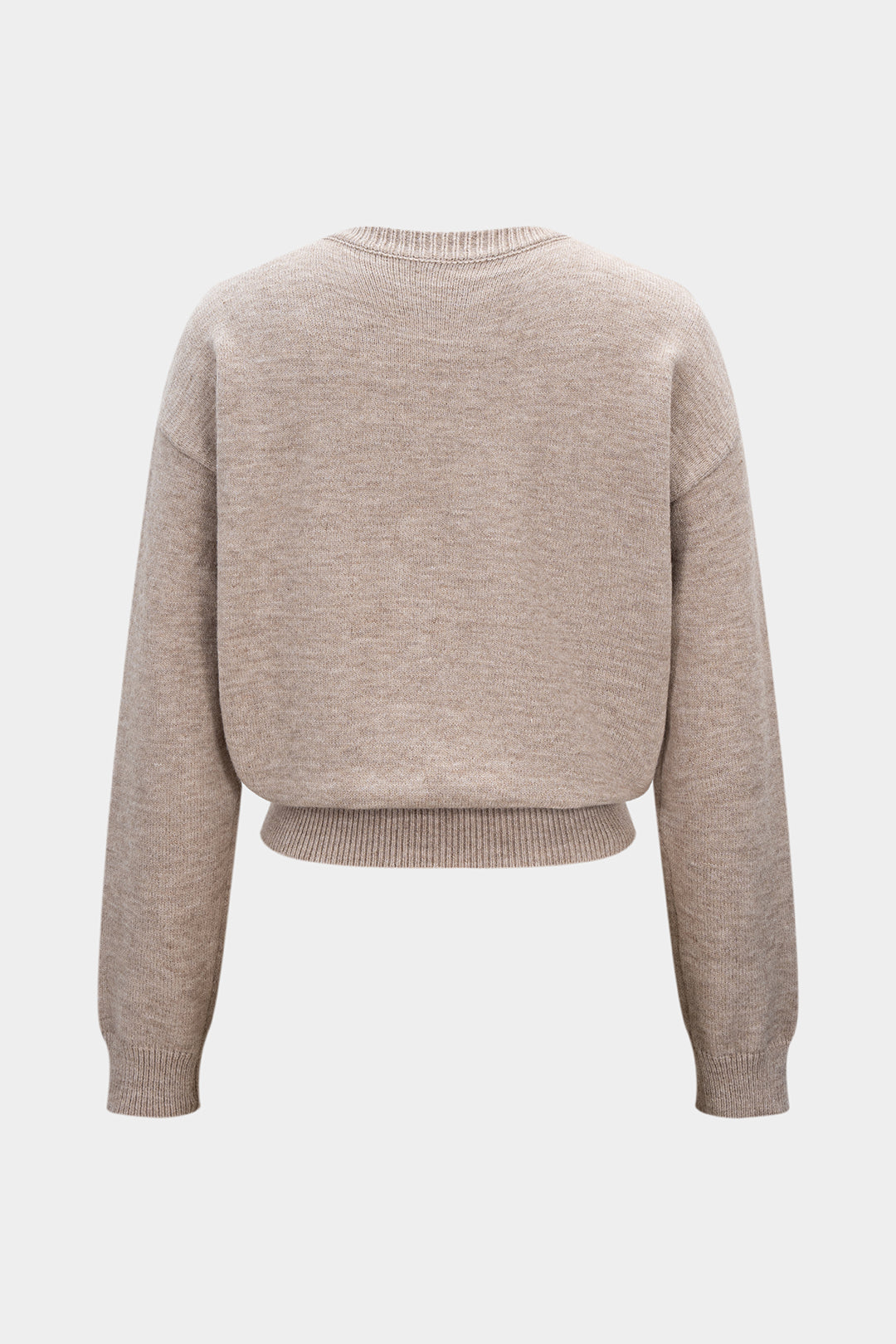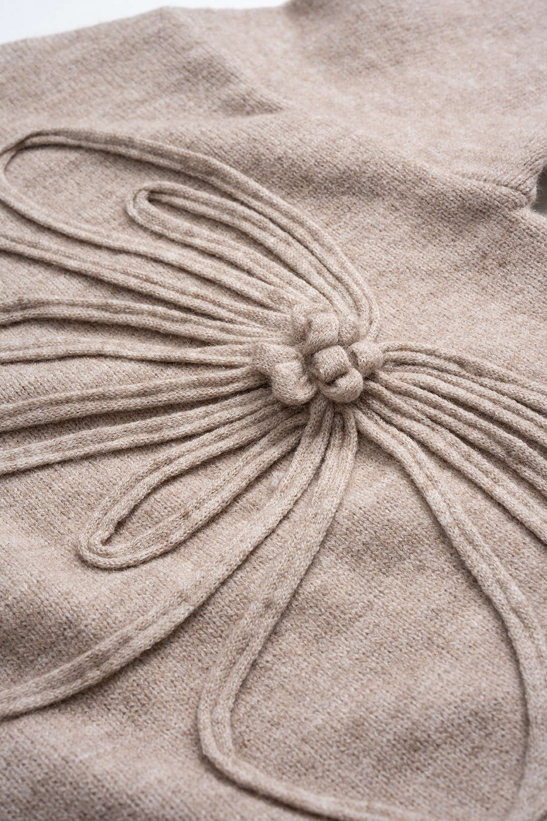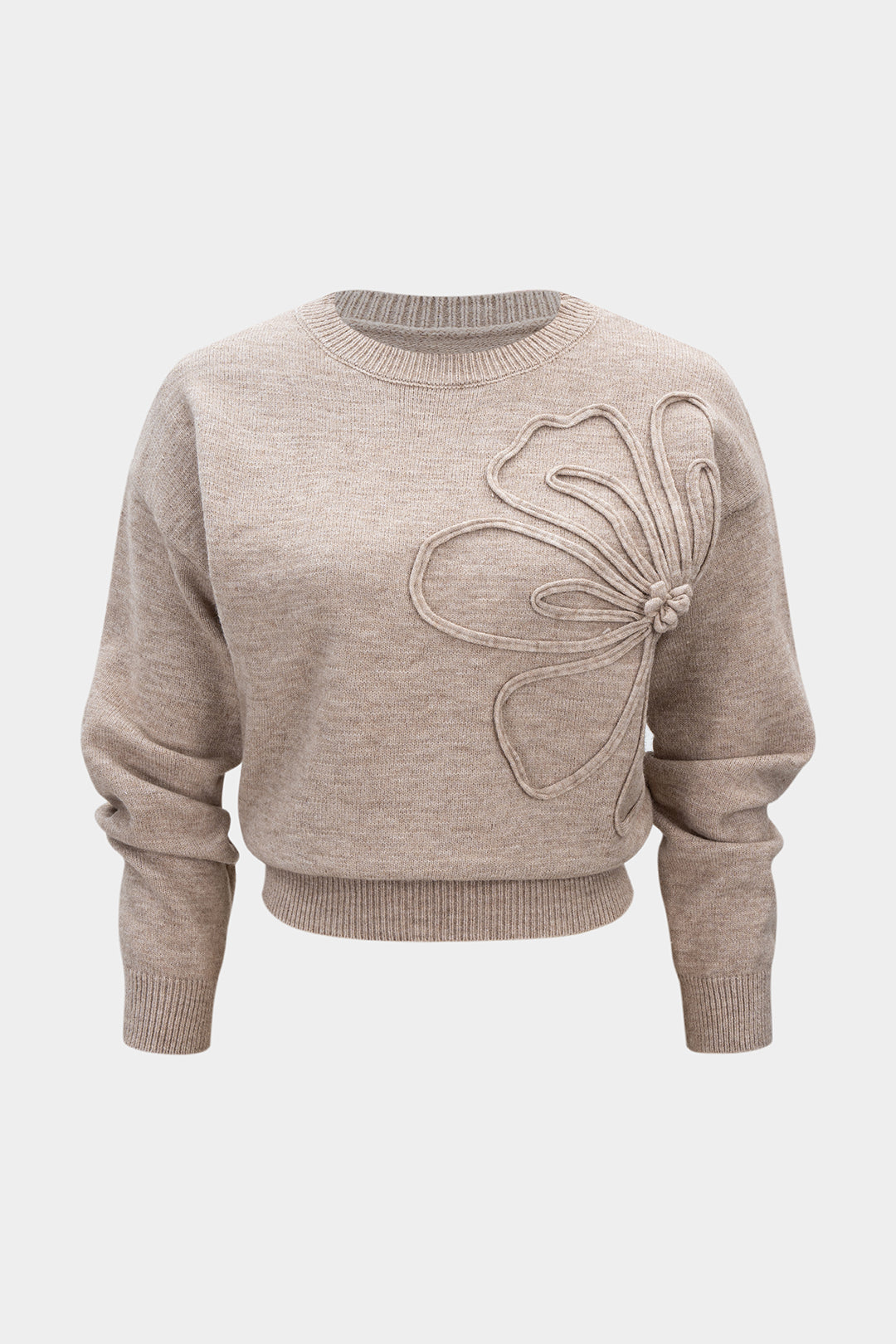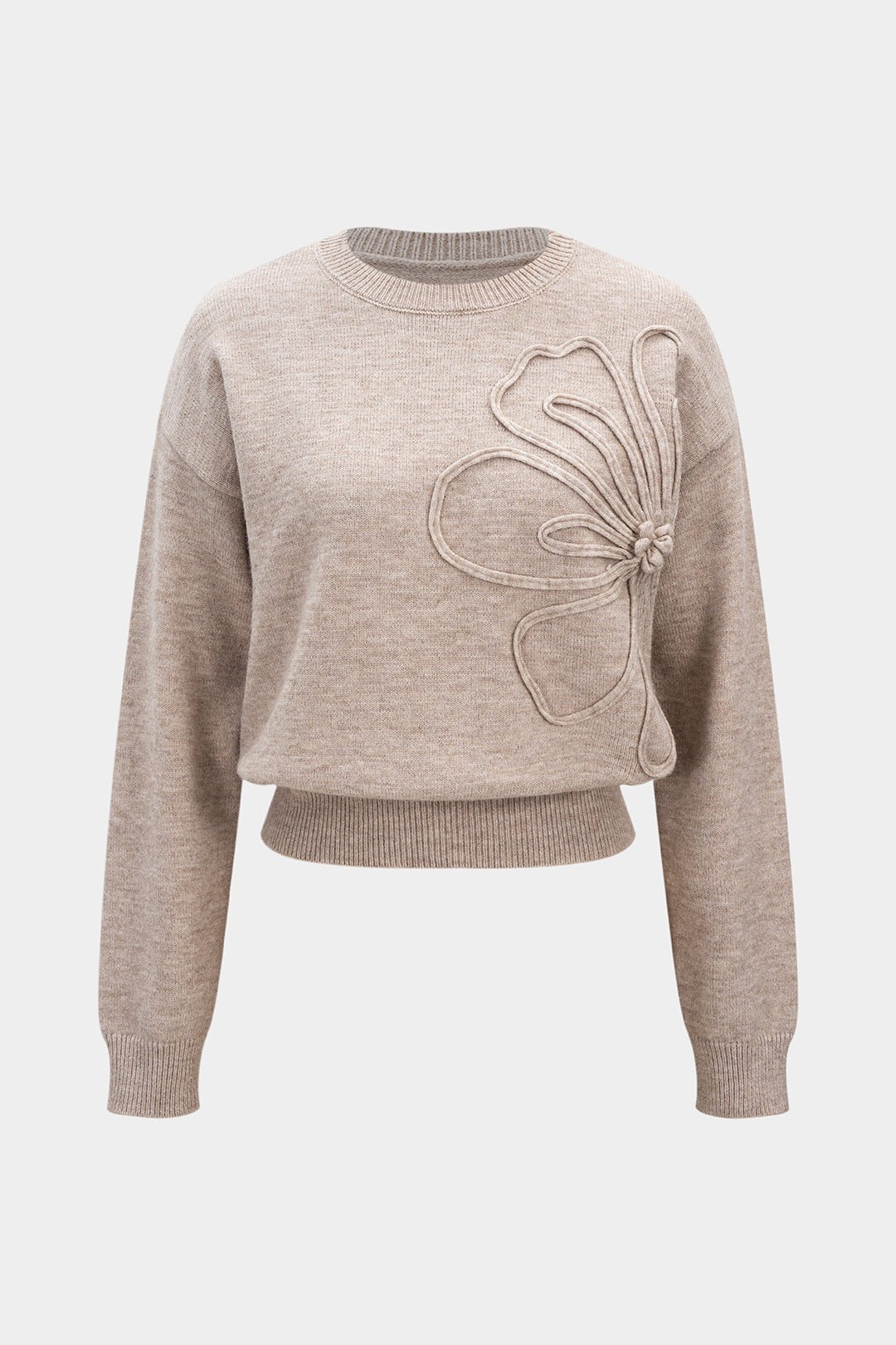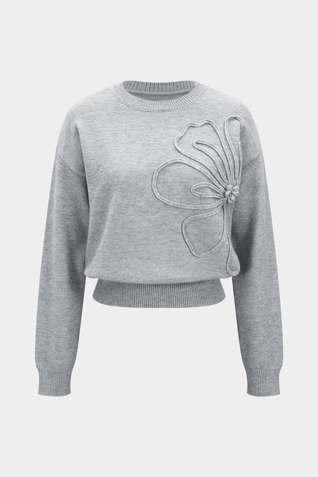 Knit Flower Applique Round Neck Long-Sleeve Top