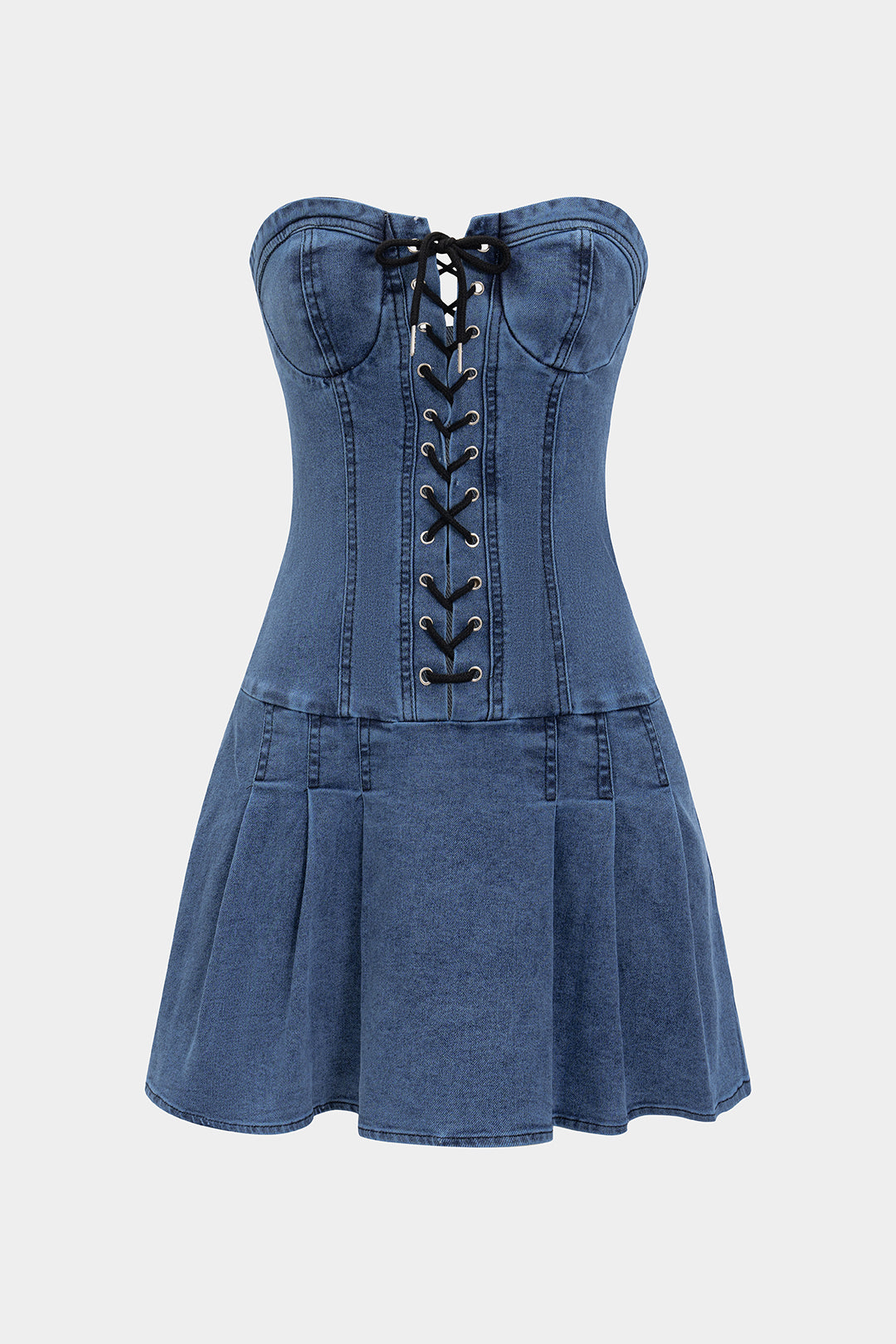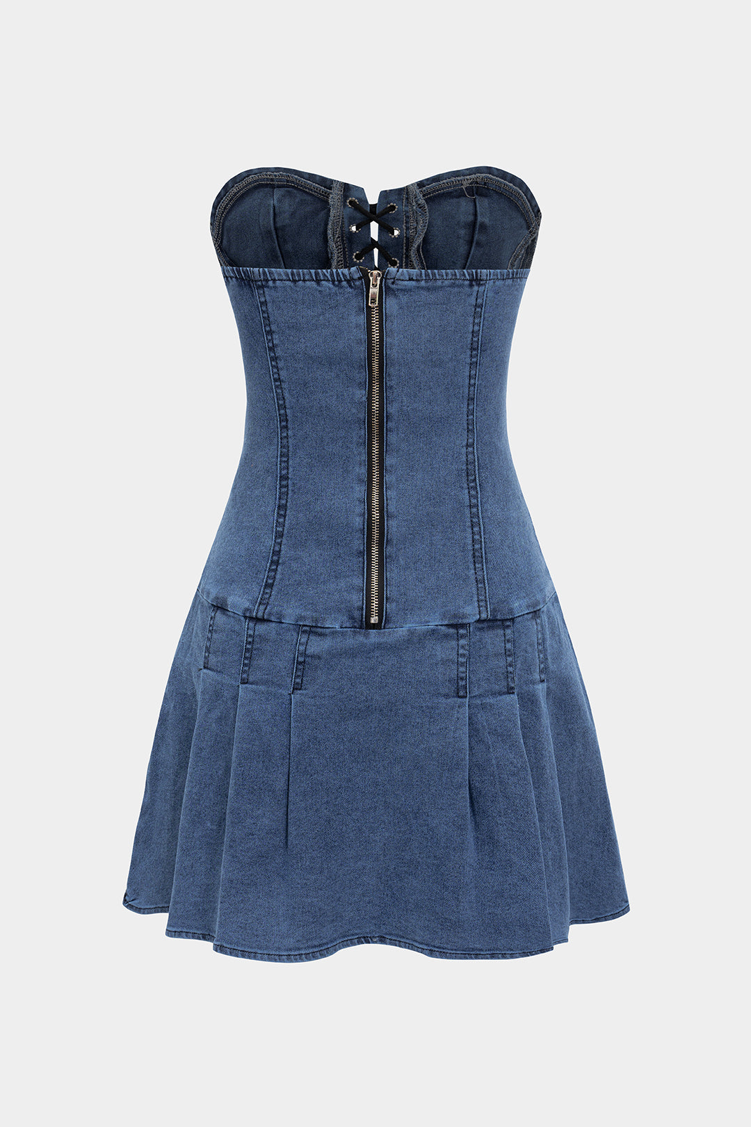 Denim Tie-Front Bustier Zipper Sleeveless Dress