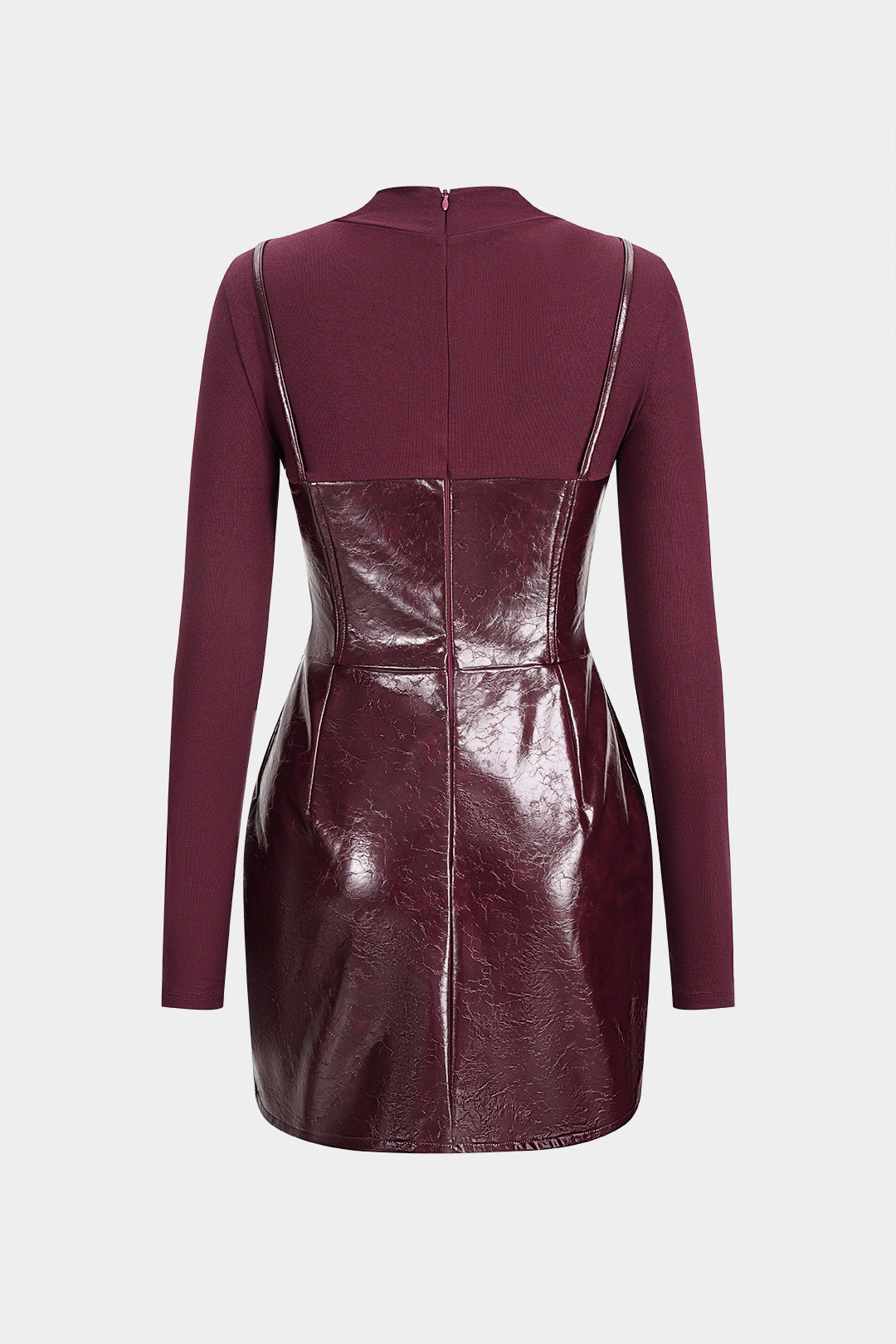 Faux Leather Patchwork Long Sleeve Mini Dress
