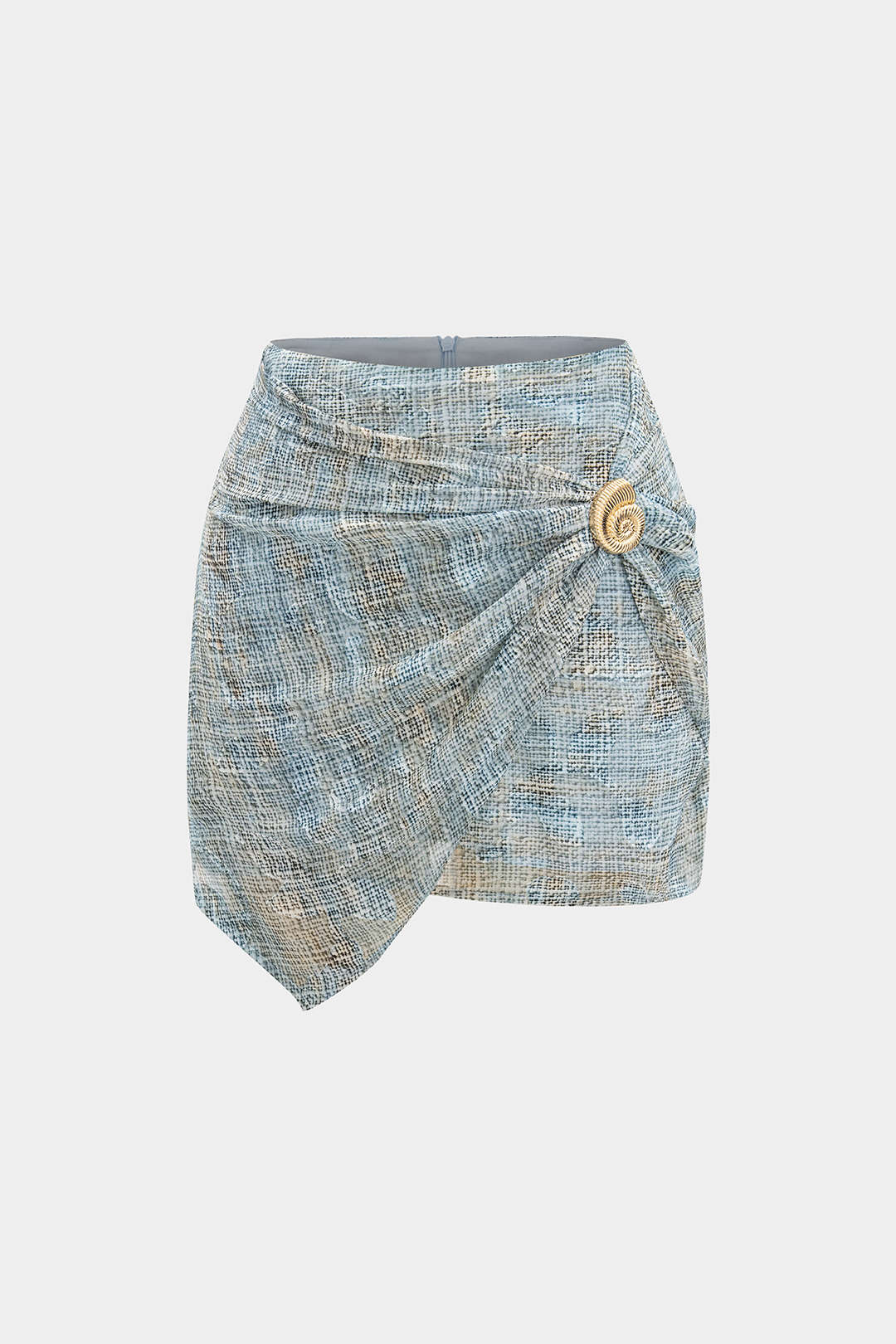 Abstract Pattern Chiffon Zipper Metallic Sea Shell Decor Ruched Skirt